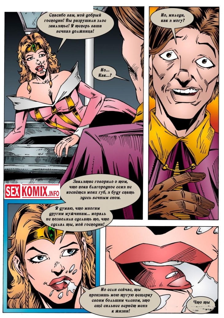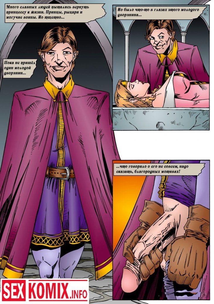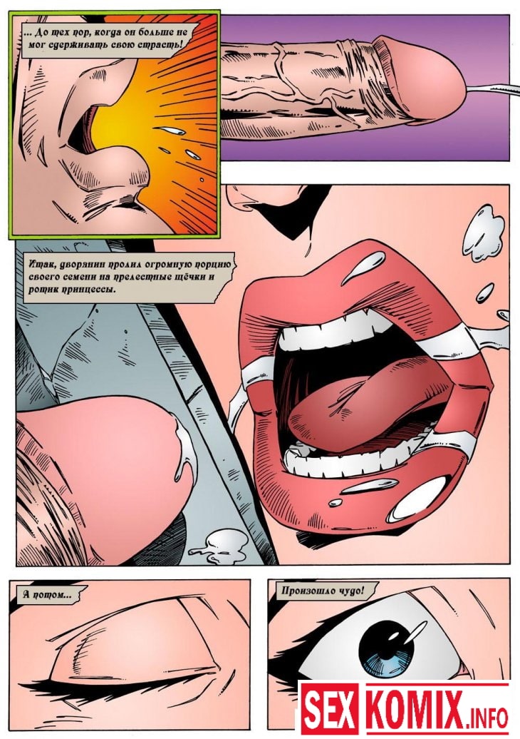 Порно комикс Спящая красавица. Этот комикс для взрослых, пародия на известную всем сказку. Но сюжет немного изменен, вместо того чтобы целовать принцессу, принц решил трахнуть её в рот. И когда он кончил ей на лицо, принцесса проснулась и они жили долго и счастливо, и трахались каждый день.