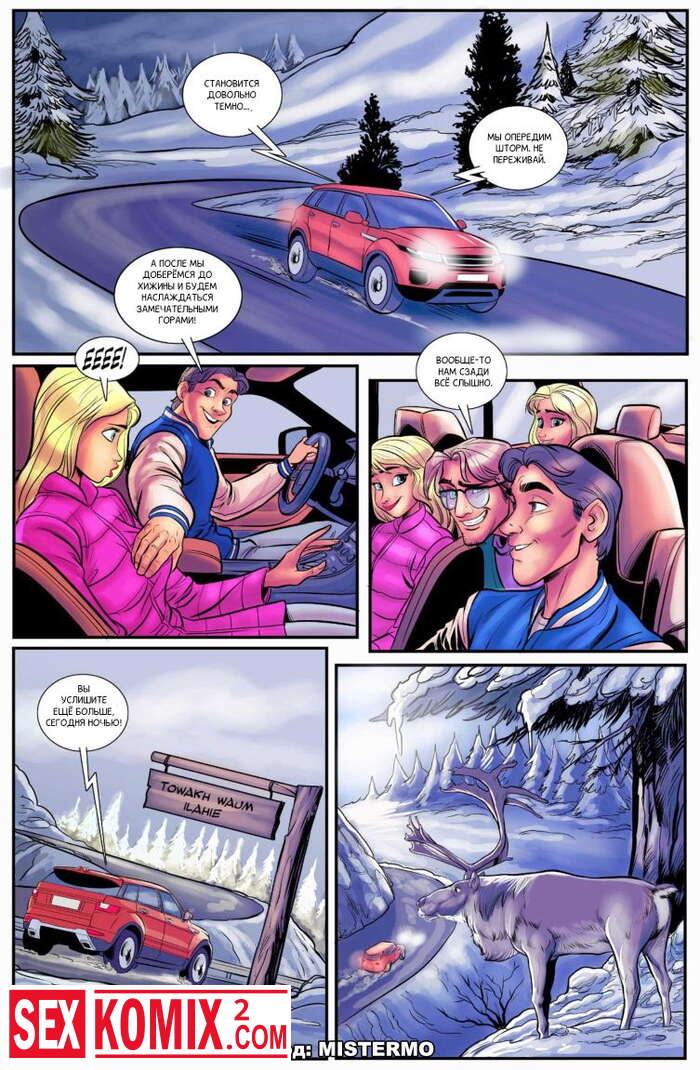 Порно комикс Cнега. Компания подростков отдыхали в загородном доме и случайно уронили древнюю статую. На блондинку подействовала магия и её грудь начала расти.