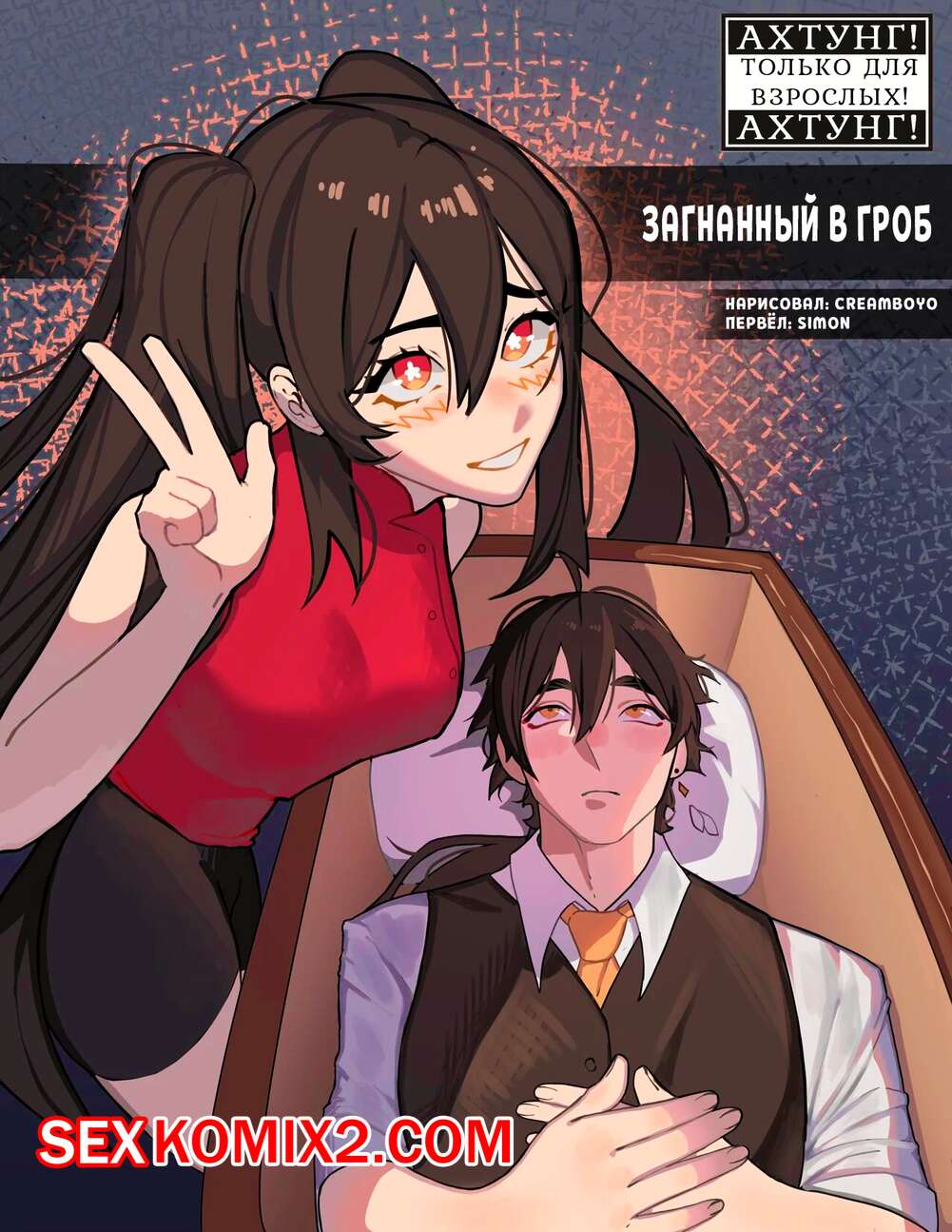 Порно комикс Genshin Impact. Загнанный в гроб. Nailed In The Coffin. Creamboyo Сексуальная брюнетка была очень возбуждена и решила повеселиться со своим дружком. Девушка разделась и отсосала большой хуй парня, после чего дала ему себя выебать и кончить в нее.