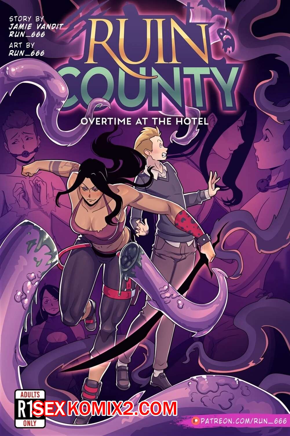Порно комикс Руинный округ. Сверхурочная работа в отеле. Overtime At The Hotel. Run 666 Сексуальная брюнетка была очень возбуждена после тренировки и стала ласкать свою пизденку, но этого было недостаточно. Красотка притащила к себе в номер отеля парня и стала дрочить его хуй, после чего дала ему отлизать свою пизденку.