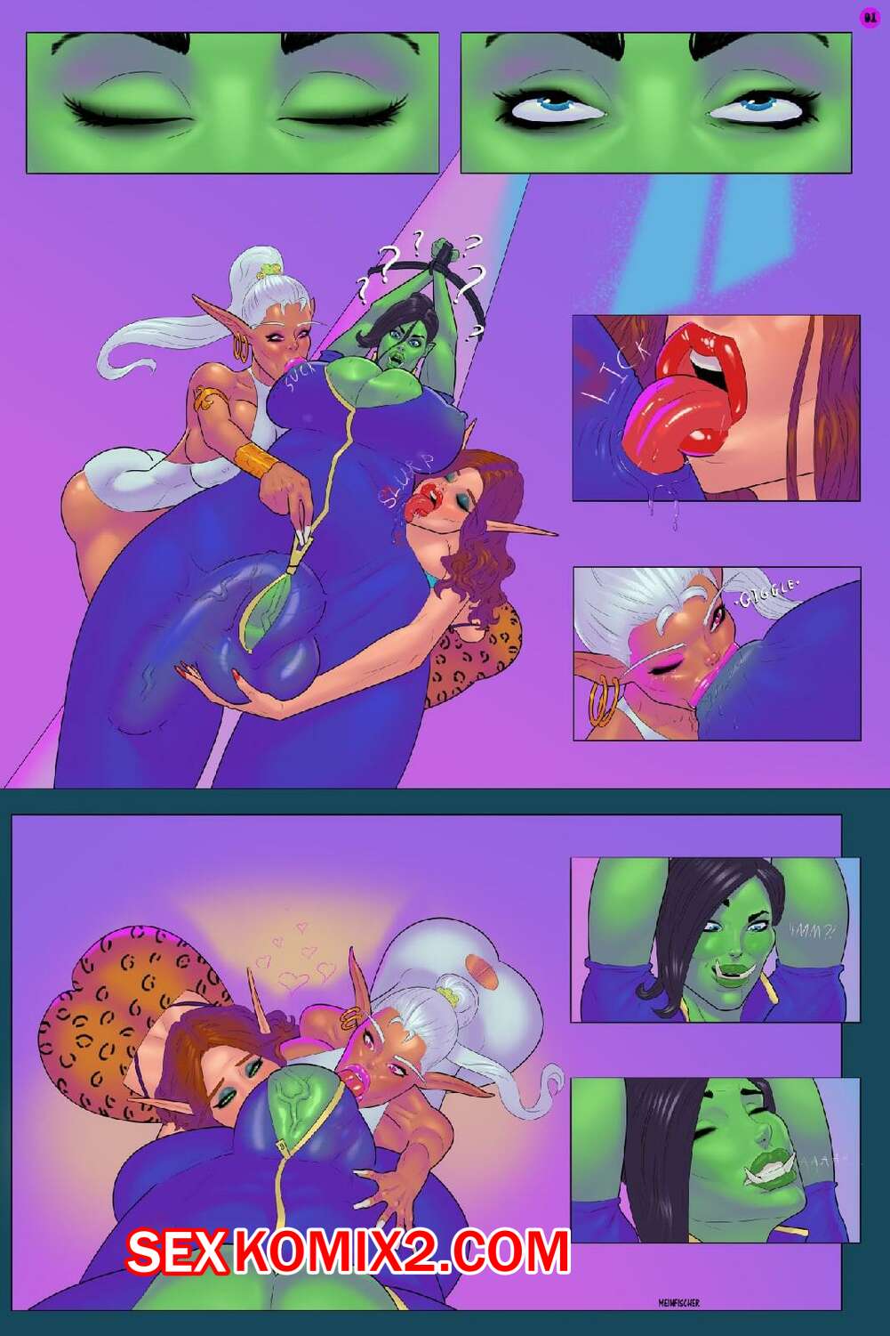 Порно комикс Горакна. Орочья жарка. Meinfischer Горячие красотки были очень возбуждены и решили повеселиться с девушкой орком. Они встали на колени и отсосали большой хуй красотки, после чего дали ей себя хорошенько выебать.