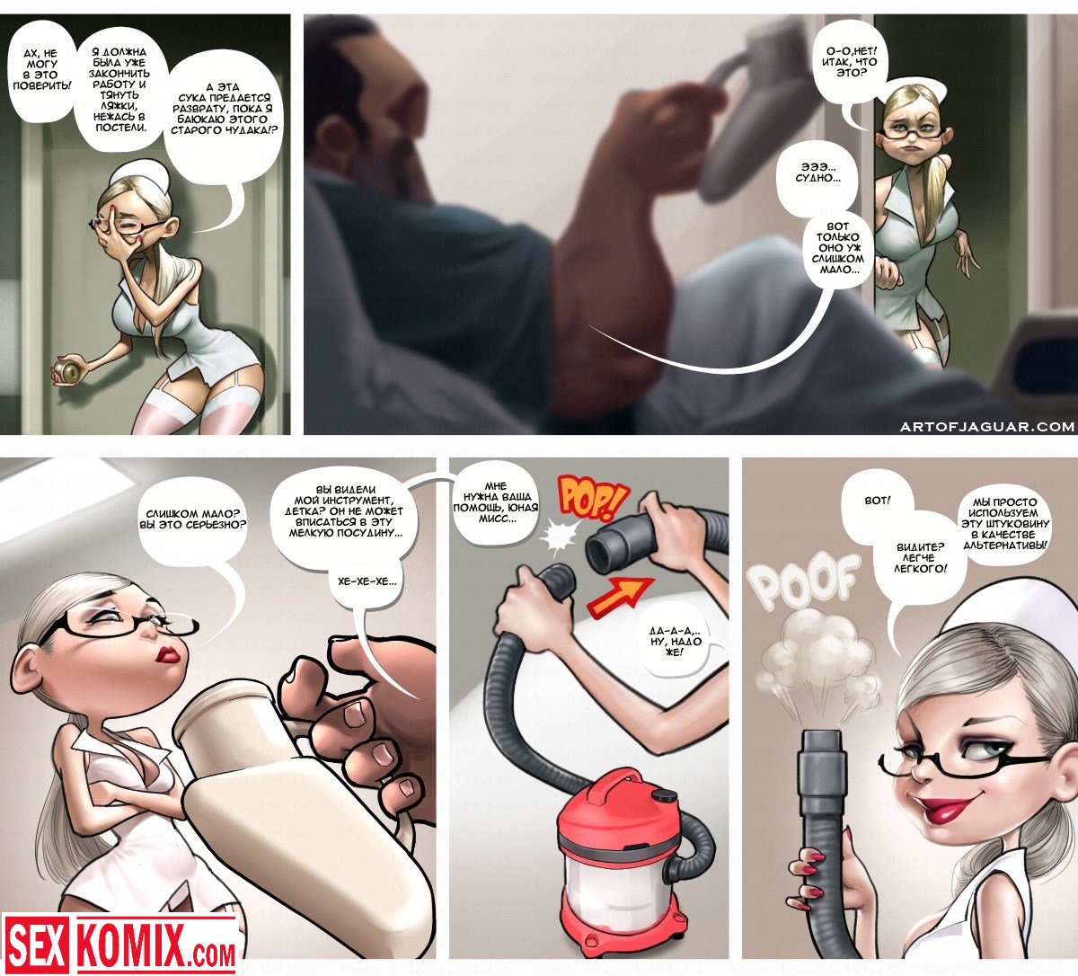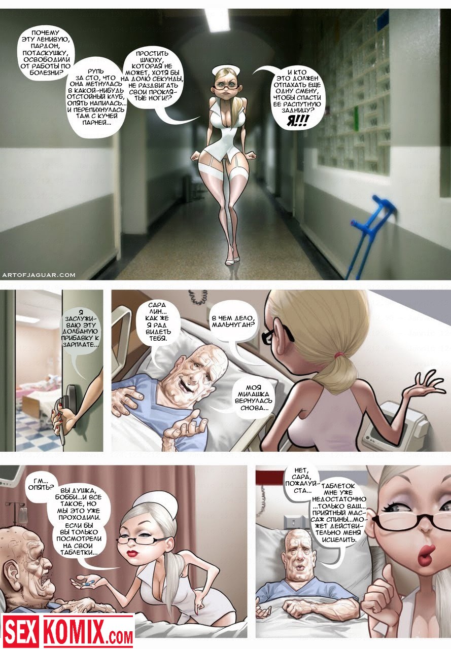 Порнокомикс Ночная сиделка. Этот секс комикс на русском о молоденько, глупой и в тоже время очень сексуальной и возбуждающей медсестре по имени Сара. Она работает в ночную смену и следит за состоянием их здоровья. В ночь с ней ещё работает старший врач, он её учит помогать больным, но не так как обычно. Врач заставляет её сосать члены и трахаться с больными, чтобы они поправлялись. Очень тяжелая ночка выдалась у секс сестрички, потому что как на зло всем пациентам резко стало плохо и им требуется секс помощь.