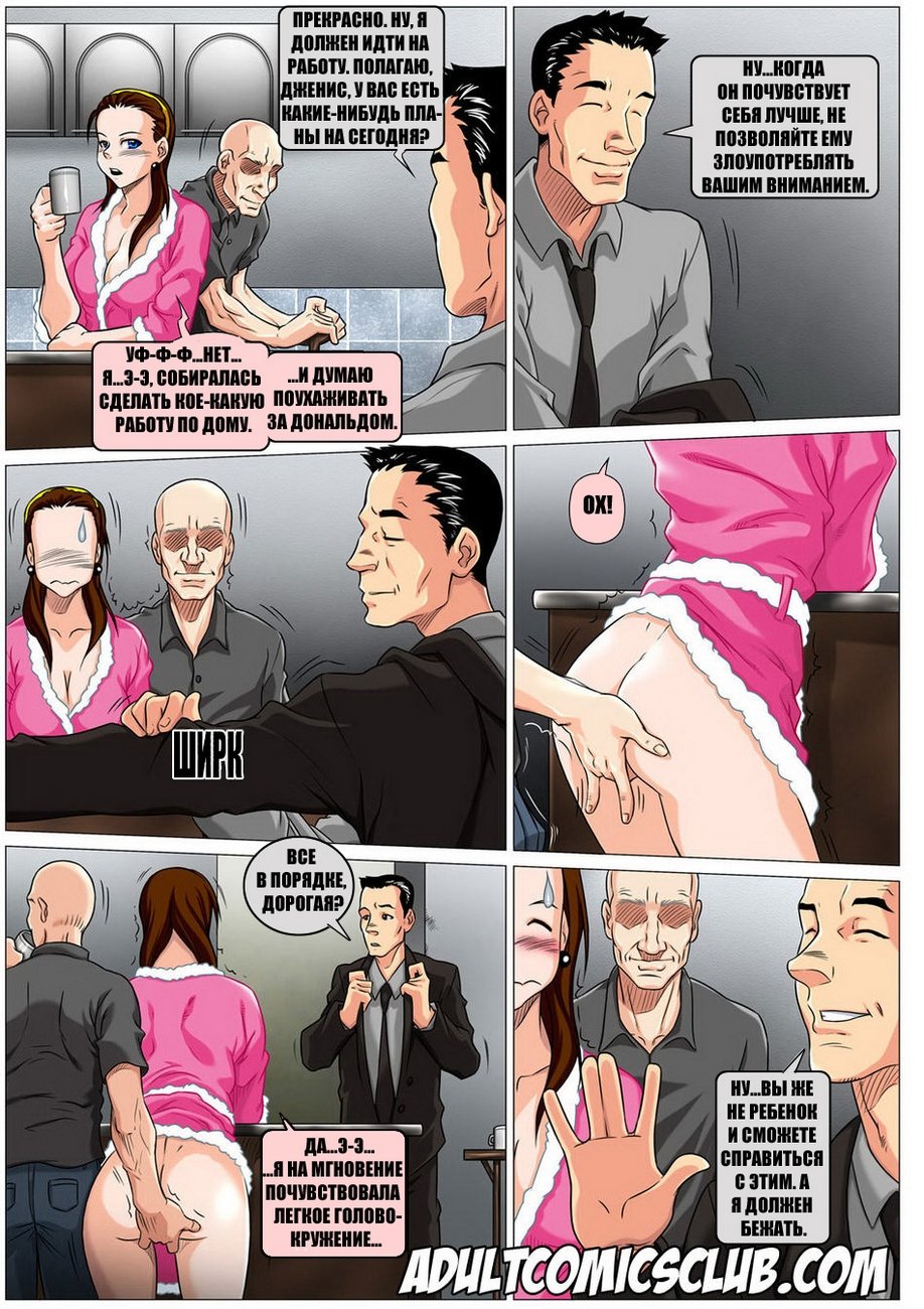 Комиксы для взрослых «Похотливый отчим». Читайте порно комикс о заботливой девушке, муж ей оставил на попечение своего отчима, пока тот будет в командировке. Пожилой мужчина парализован и за ним нужен постоянный уход. Когда наша сексуальная героиня начала мыть старика, она раздела его до гола и увидела, что его большой член встал на сочные сиськи. Девушка смочила губку и отмыла хуй как следует, да увлеклась и он спустил сперму ей прямо на лицо. После этого она пошла в душ, и каково было её удивление. Мужчина на своих ногах пришёл к ней и потребовал секса!