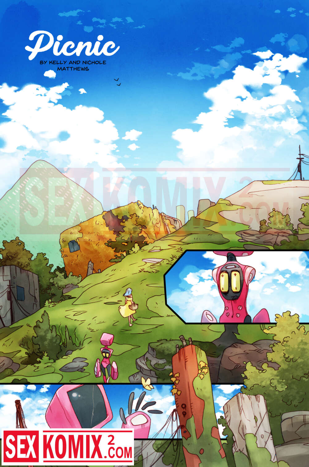 Порно комикс Пикник. Девушка отправилась на пикник со своим роботом, рядом никого не было, и красотка воспользовалась им как секс игрушкой.