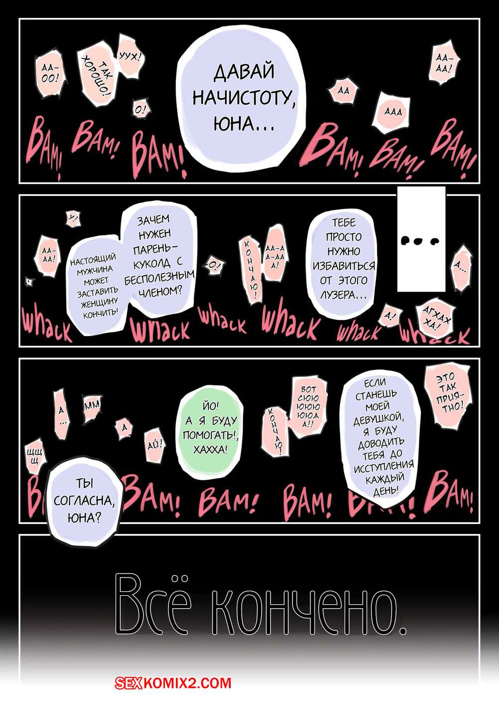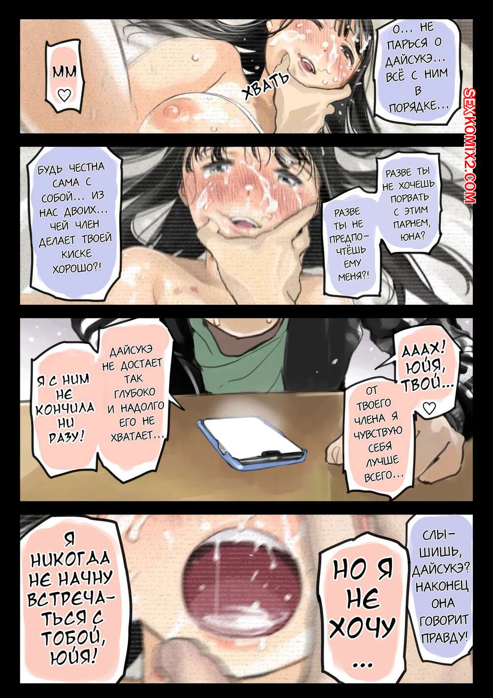 Порно комикс Я только что покопался в её смартфоне. Часть 2 Парень выяснил, что его девушка изменяет ему и все ей рассказал, но ее это не останавливает. Красотка продолжает встречаться со своими дружками,ч тобы они выебали ее во все дырочки.