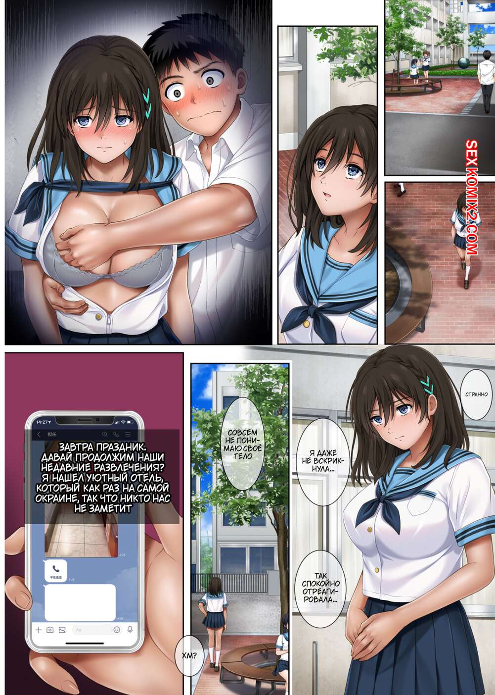 Порно комикс Словно во сне. Часть 2. Хаякава Нозоми. Cyclone Мерзкий мужик продолжает наслаждаться телом своей ученицы. Он раздевает красотку и дает ей отсосать свой большой хуй, после чего хорошенько трахает ее пизденку.