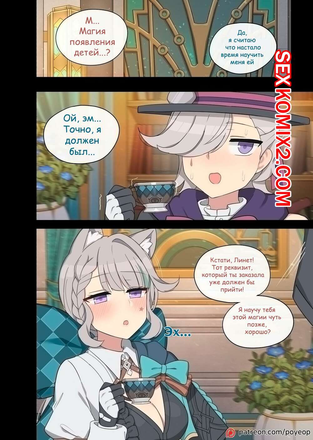 Порно комикс Genshin Impact. Мисс Линетт. Linette. Poyeop Парень набухал горячую блондинку Линетт и решил воспользоваться моментом по полной. Он достал свой член и дал красотке его отсосать, после чего хорошенько ее выебал.