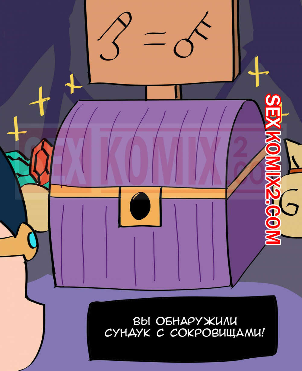 Порно комикс RPG. Персонаж нашел загадочный сундук, он засунул в него свой хуй и почувствовал что-то мягкое. Это были большие сиськи девушки.