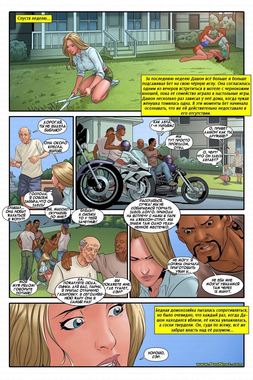 Порно комикс «Сёстры Уильямс предпочитают чёрных». Развратная мать, устроила в своем доме вечеринку у бассейна. И пригласили всех парней с округи, чтобы они составили двум горячим девушкам компанию. Парни уже давно присматривались к ним, и видели как они крутят попками когда проходят мимо на улице, поэтому от предложения увидеть цыпочек в купальниках они не отказались, да и вдруг удастся их трахнуть на вечеринке. Красотки именно для этого и пригласили столько самцов, чтобы отдаться им и хорошенько потрахаться, со всеми сразу и по отдельности.
