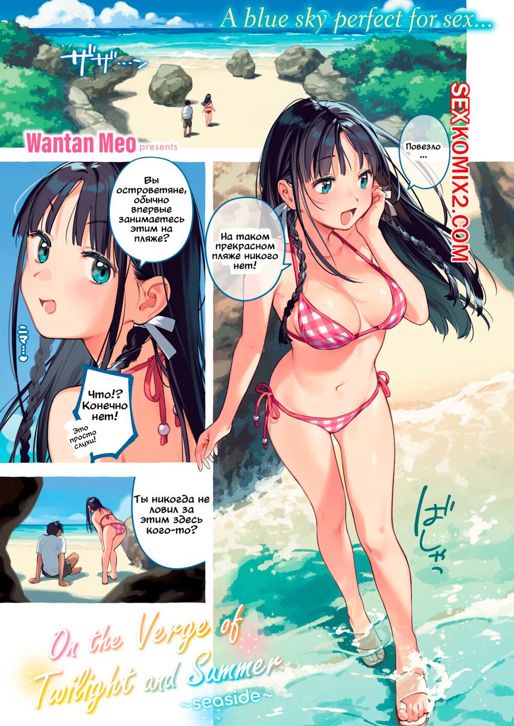 Порно комикс На грани сумерек и лета. Морское побережье. Wantan Meo Горячая брюнетка пришла на пляж со своим дружком, где они решили пошалить. Красотка разделась и соблазнила парня, после чего раздвинула ножки и дала ему себя выебать.