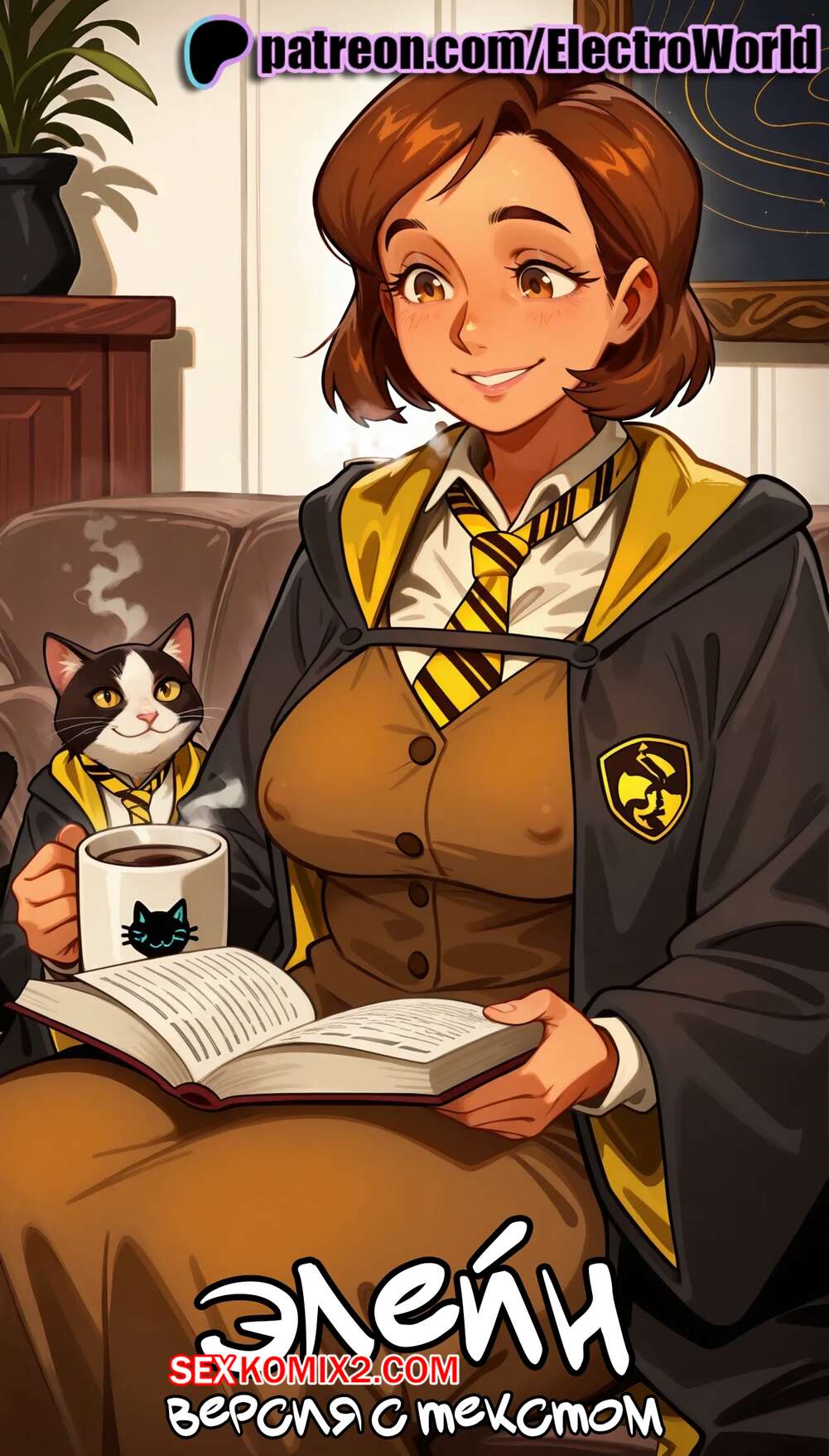 Порно комикс Гарри Поттер. Элейн. Версия с текстом. Poppy Sweeting. ElectroWorld Горячая брюнетка возбудилась и хочет трахаться. Она разделась перед своим дружком и стала сосать его член, после чего раздвинула ножки и дала ему себя хорошенько выебать.