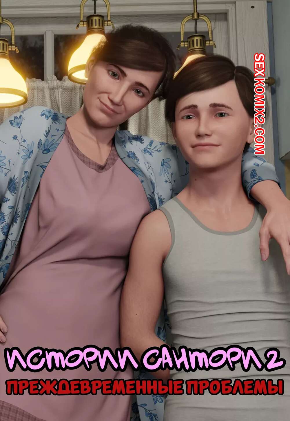 Порно комикс Истории Сантори. Часть 2. Santori Stories. Santo Fabbro Горячая милфа занималась готовкой на кухне и заметила подглядывающего сына. Она села на стул и дала ему полизать свою киску, посел чего сама встала на колени и отсосала член сыночка.