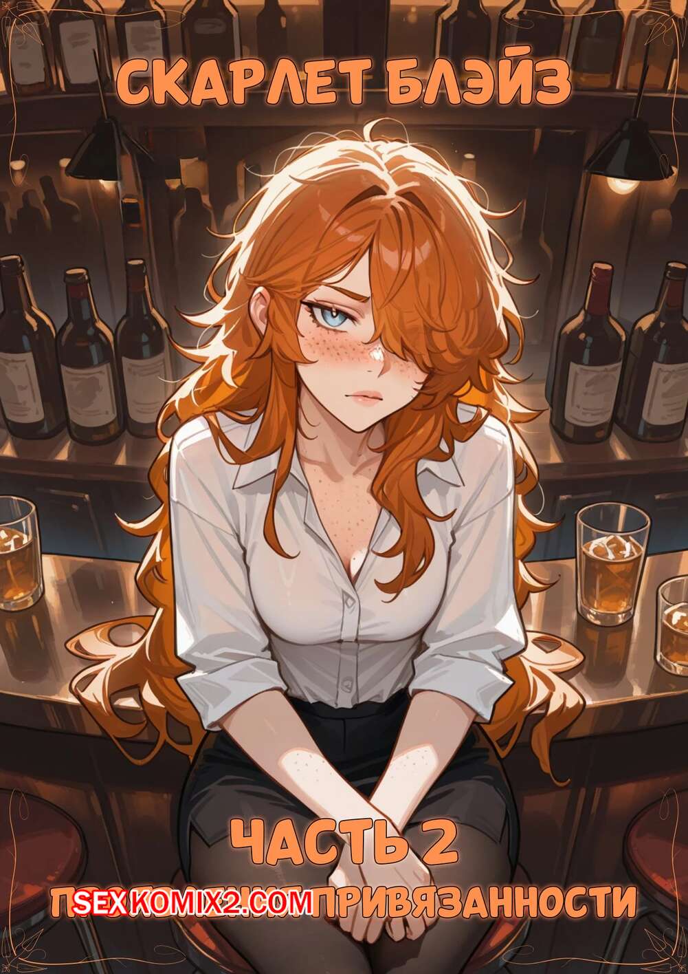 Порно комикс Скарлет Блейз. Часть 2. Проявления привязанности. Displays of Affection Рыжая красотка выпивала в баре со своим дружком и решила его подразнить. Девушка стала дрочить ножками стояк парня, после чего они отправились в туалет, где рыжуля раздвинула ножки и дала отлизать свои дырочки.
