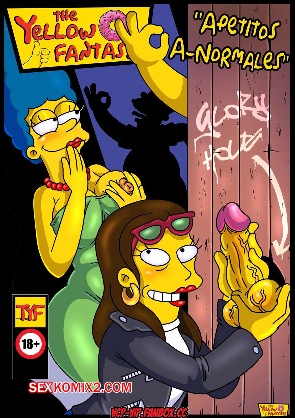 Порно комикс Симпсоны. Желтая фантазия. Ненормальный аппетит. Apetitos Anormales. VCP Рут пригласила с собой Мардж в бар, где довольно молодой контингент. Она хочет попробовать глорихол и просит подругу помочь ей с выбором парня для своей авантюры.