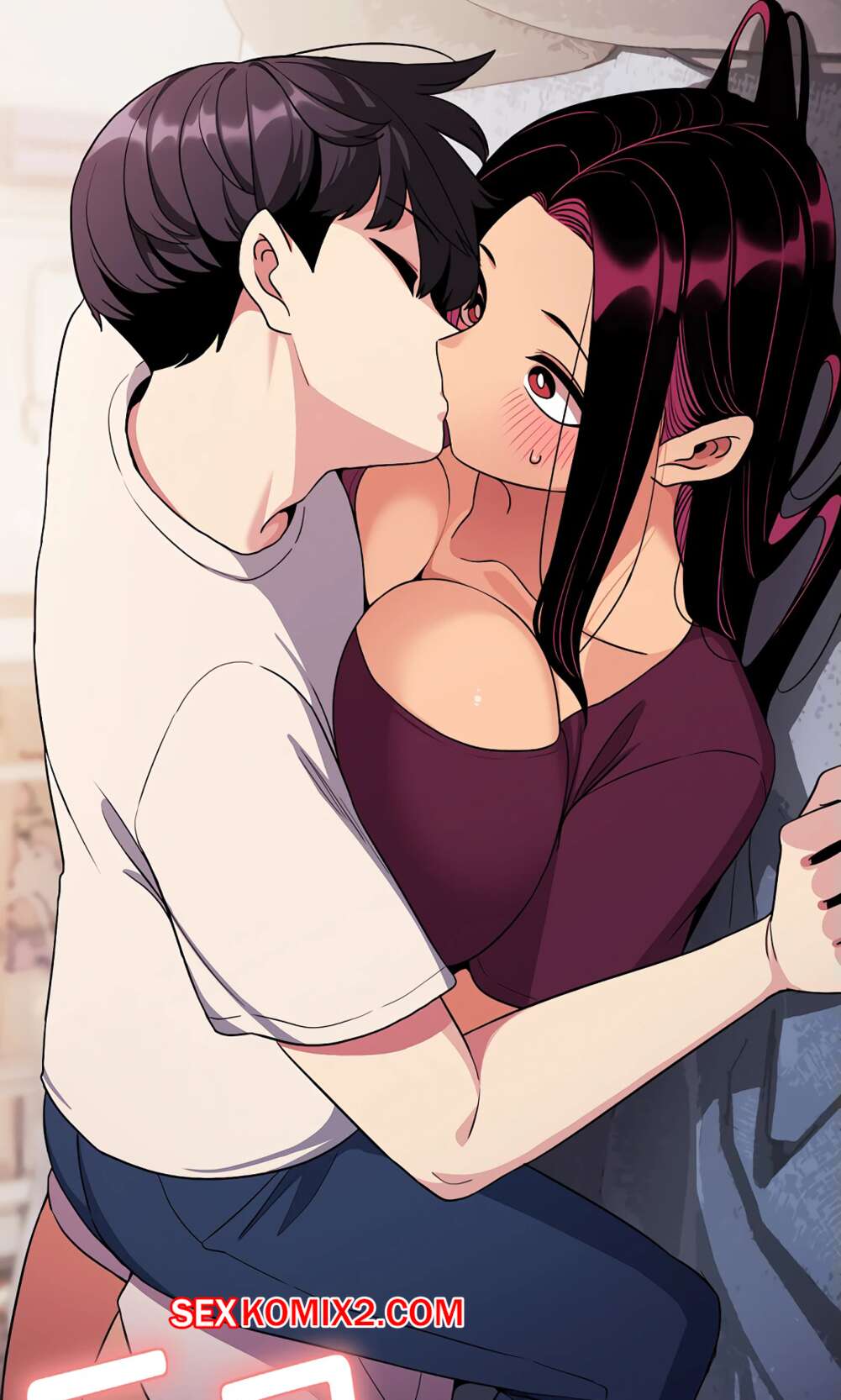 Порно комикс Только не курить. Без цензуры. Часть 5. Someone Stop Her Горячая брюнетка остается наедине с соседским парнем и начинает его задирать. Случайно парень упал на девушку и повалил ее на пол, после чего стал ее целовать.