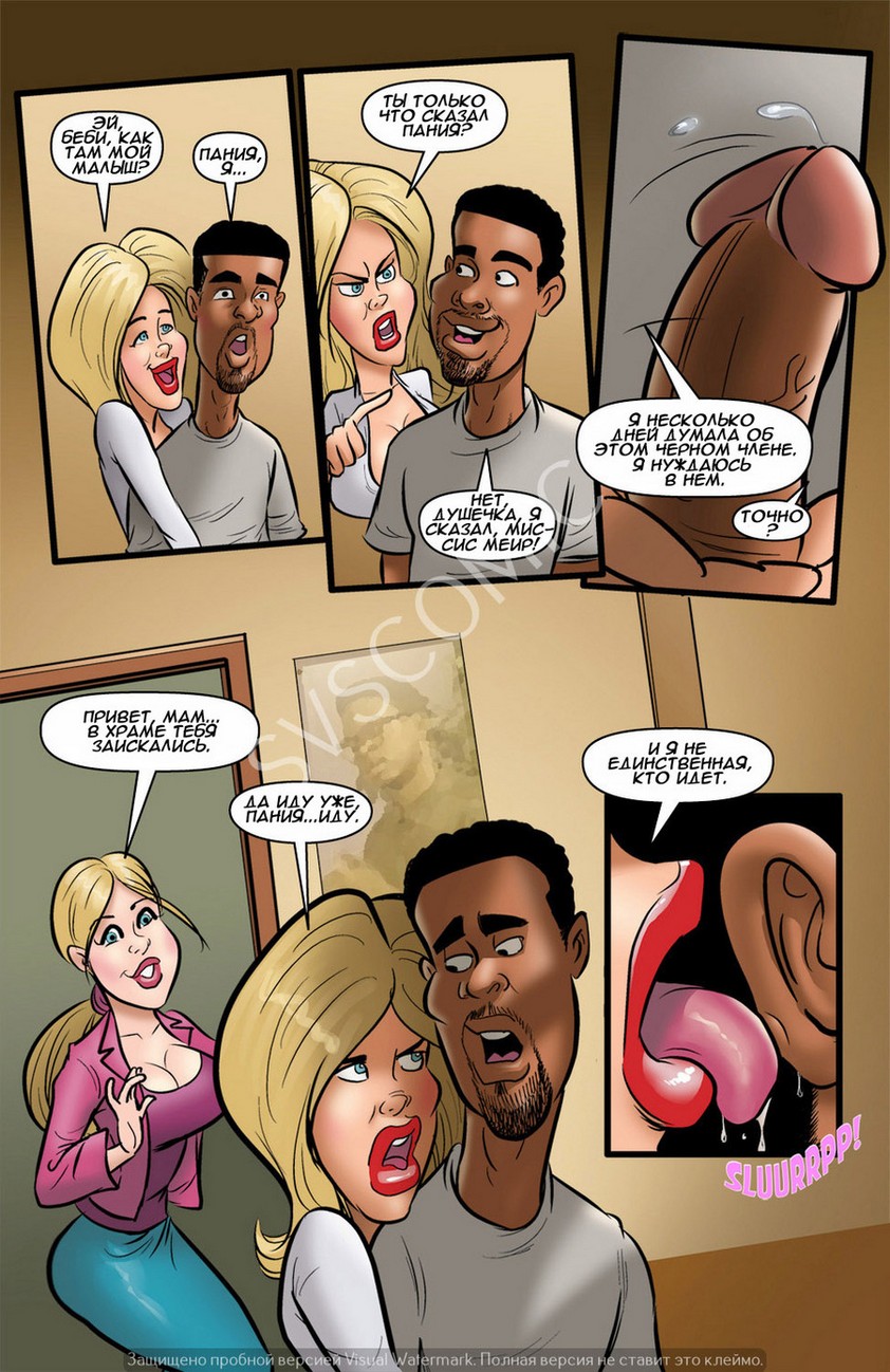 Порно комикс «Лазейка в рай. История третья». В этой части молодая и горячая блондинка, которая готовит себе дорогу в рай, делая добрые секс дела, решила действовать максимально эффективно. Она задумала ублажить сразу троих чернокожих парней, девушка сосала и лизала их огромные члены, дала себя трахнуть и даже с задницу. Парни развлеклись на славу, они и не знали, что эта сумасшедшая трахаясь с ними хочет попасть в рай. После отличной оргии красотка смыла с себя всю сперму и уверенная подла дальше творить добрые дела.