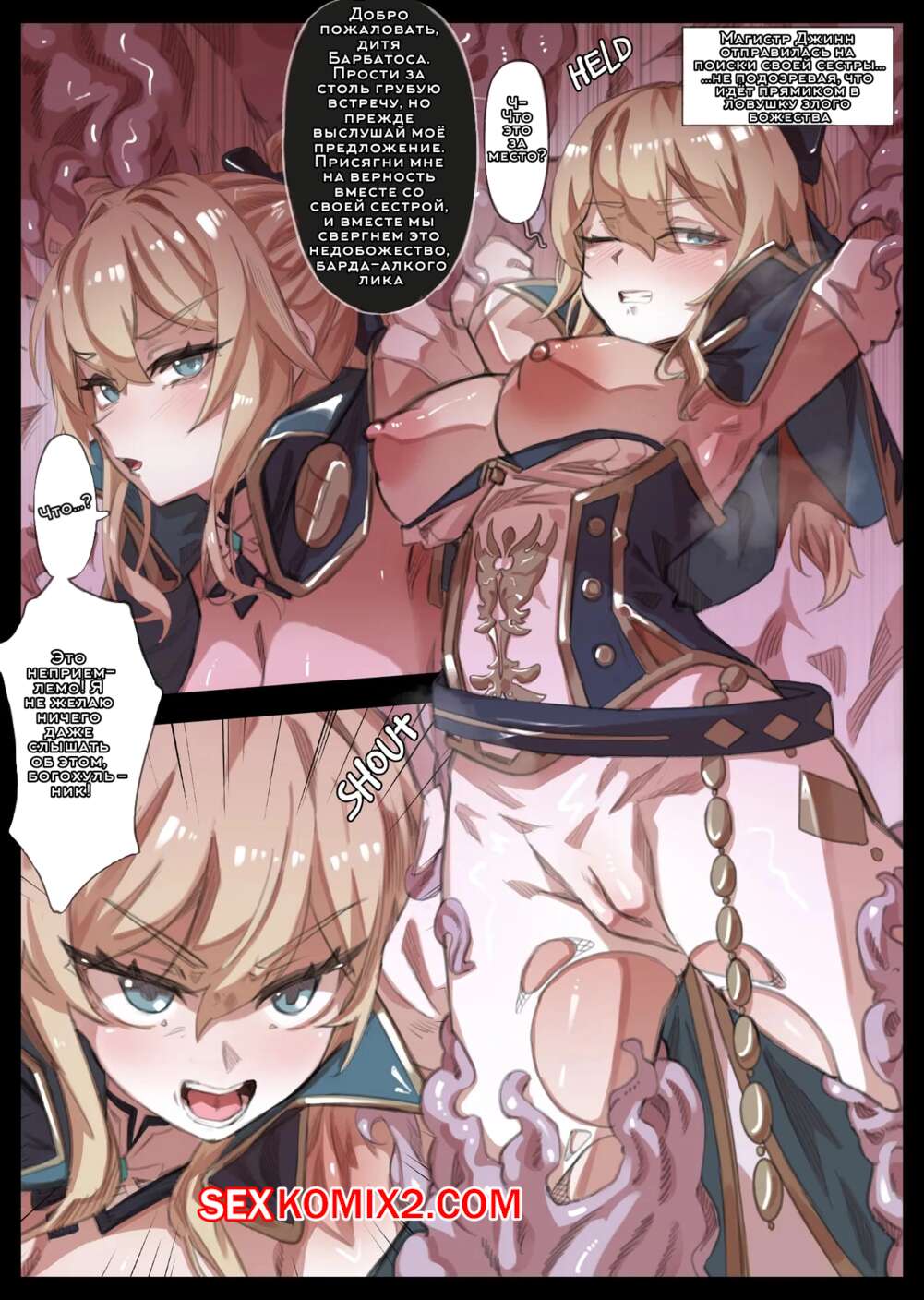 Порно комикс Genshin Impact. Падший рыцарь Джинн. Ochiru Onna Kishi Jean. miwerjooggetser Парень с щупальцами схватил горячую блондинку, желая насытиться ее телом. Он стал трахать ее пизденку тентаклем, после чего вставил ей в задницу свой большой хуй.