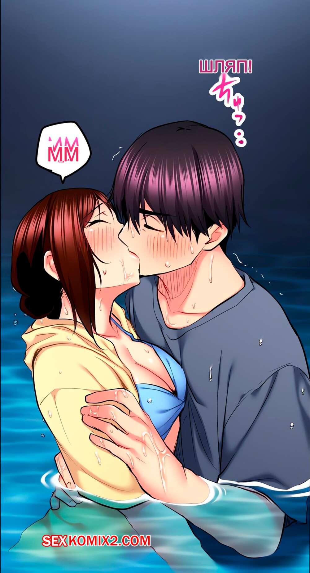 Порно комикс Невинная телепевица. Без цензуры. Часть 46 и 47 и 48 Парень с девушкой пошли в бассейн, чтобы расслабиться. Кроме них там никого не было, поэтому они спустились в воду и стали страстно целоваться, желая немного пошалить.