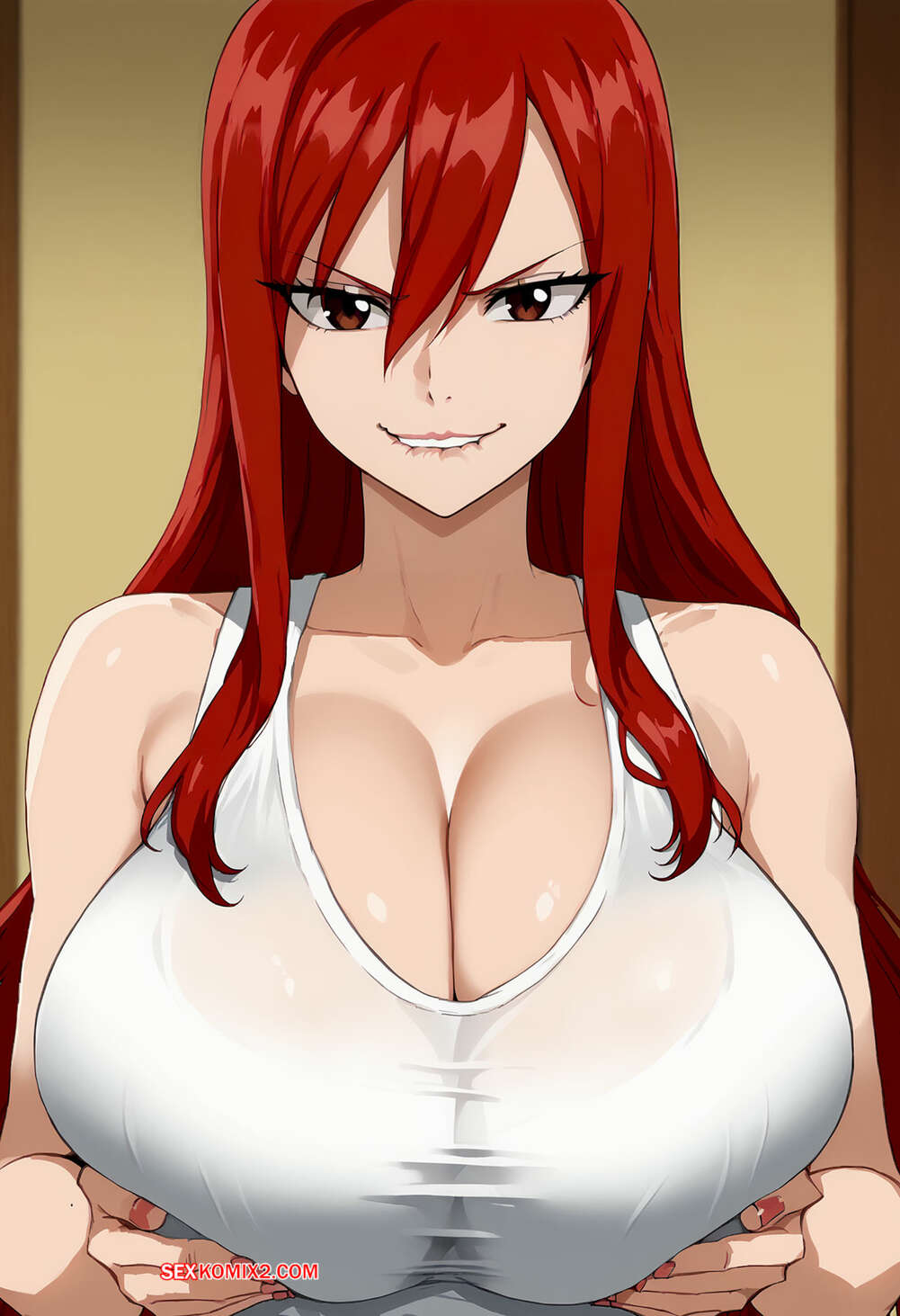 Порно комикс Erza Scarlet x BBC. Floxin Рыжая сучка Скарлет надела откровенный наряд и стала крутиться перед парнем, возбуждая его. Красотка глубоко сосет хуй парня, после чего дает ему себя хорошенько выебать.