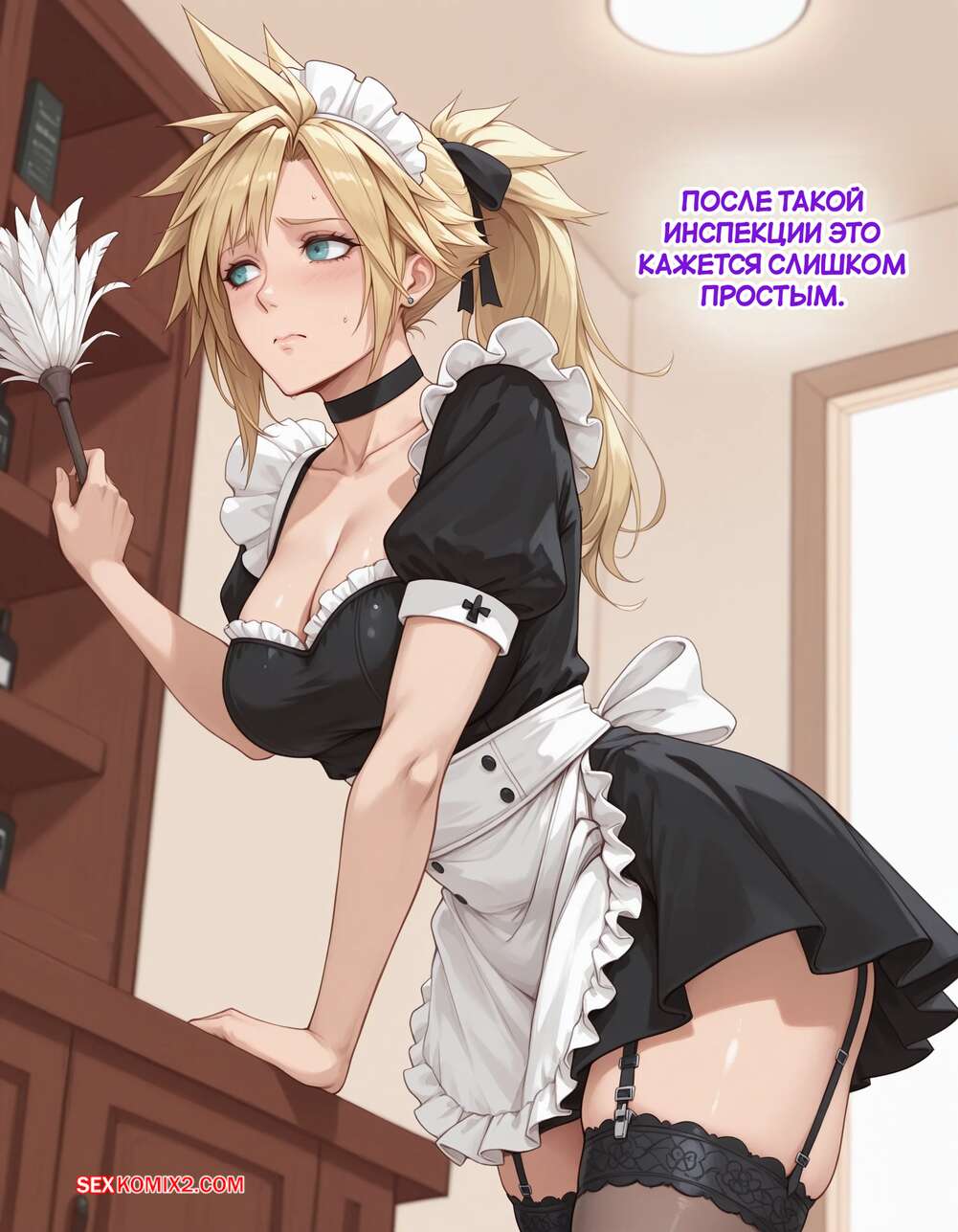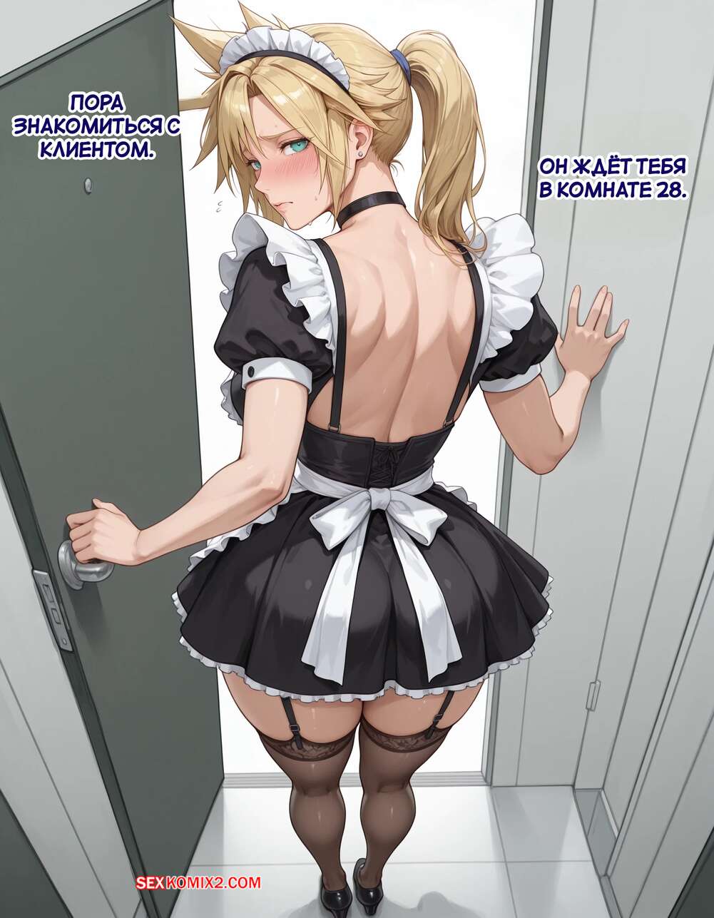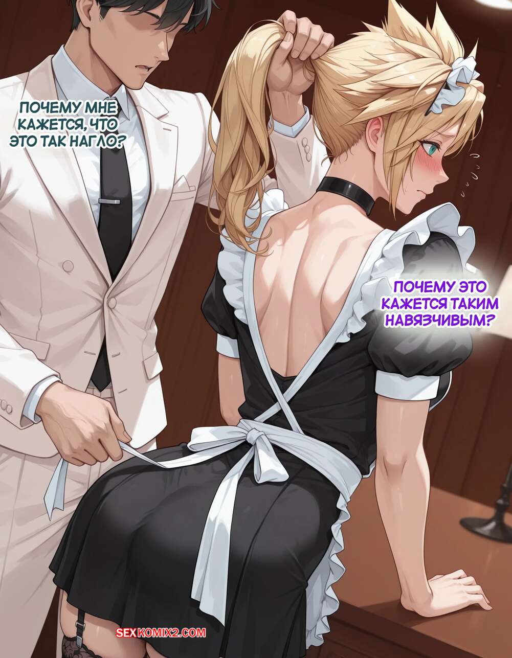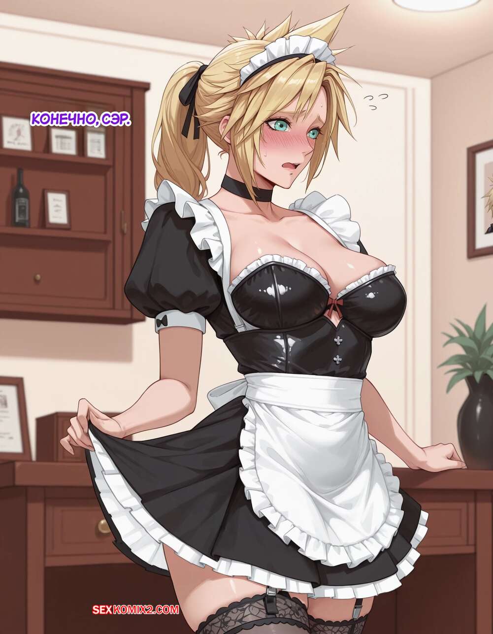 Порно комикс Эксперимент Шинра. Часть 2. The Shinra Experiment. SAX Блондиночка продолжает свыкаться со своей новой жизнью. Красотка надела костюм горничной и отправилась в офис парня, чтобы убраться, но она стал ласкать ее пизденку пальцами, желая хорошенько трахнуть.