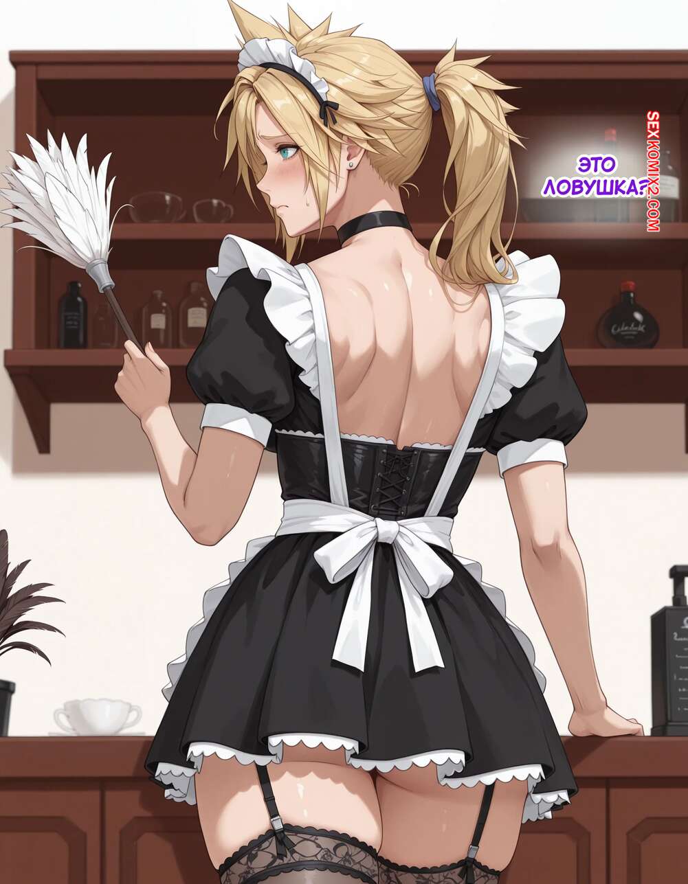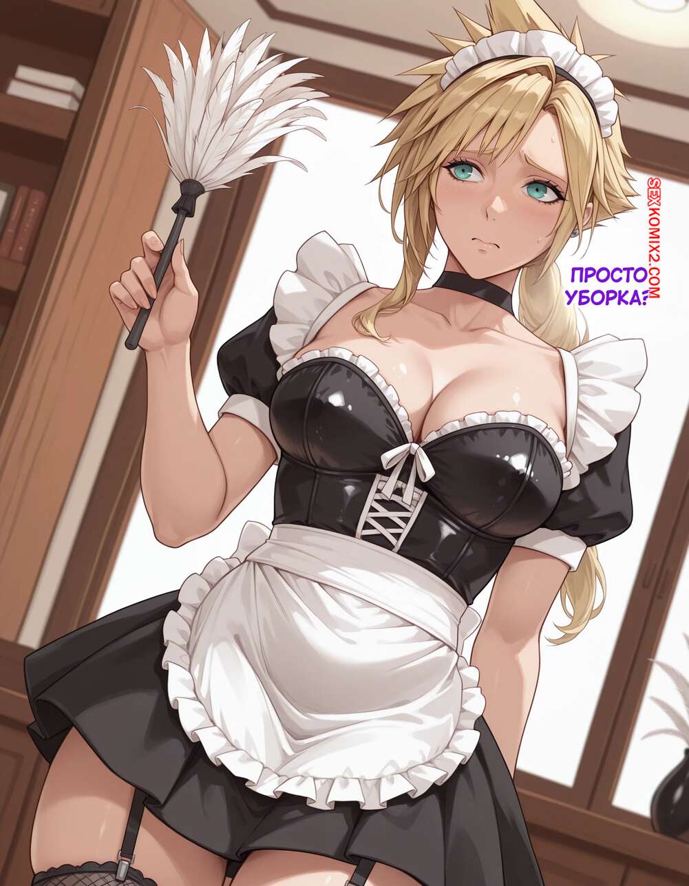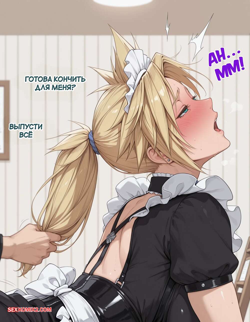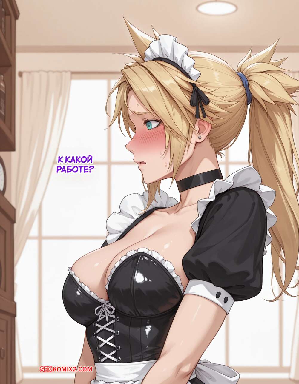 Порно комикс Эксперимент Шинра. Часть 2. The Shinra Experiment. SAX Блондиночка продолжает свыкаться со своей новой жизнью. Красотка надела костюм горничной и отправилась в офис парня, чтобы убраться, но она стал ласкать ее пизденку пальцами, желая хорошенько трахнуть.