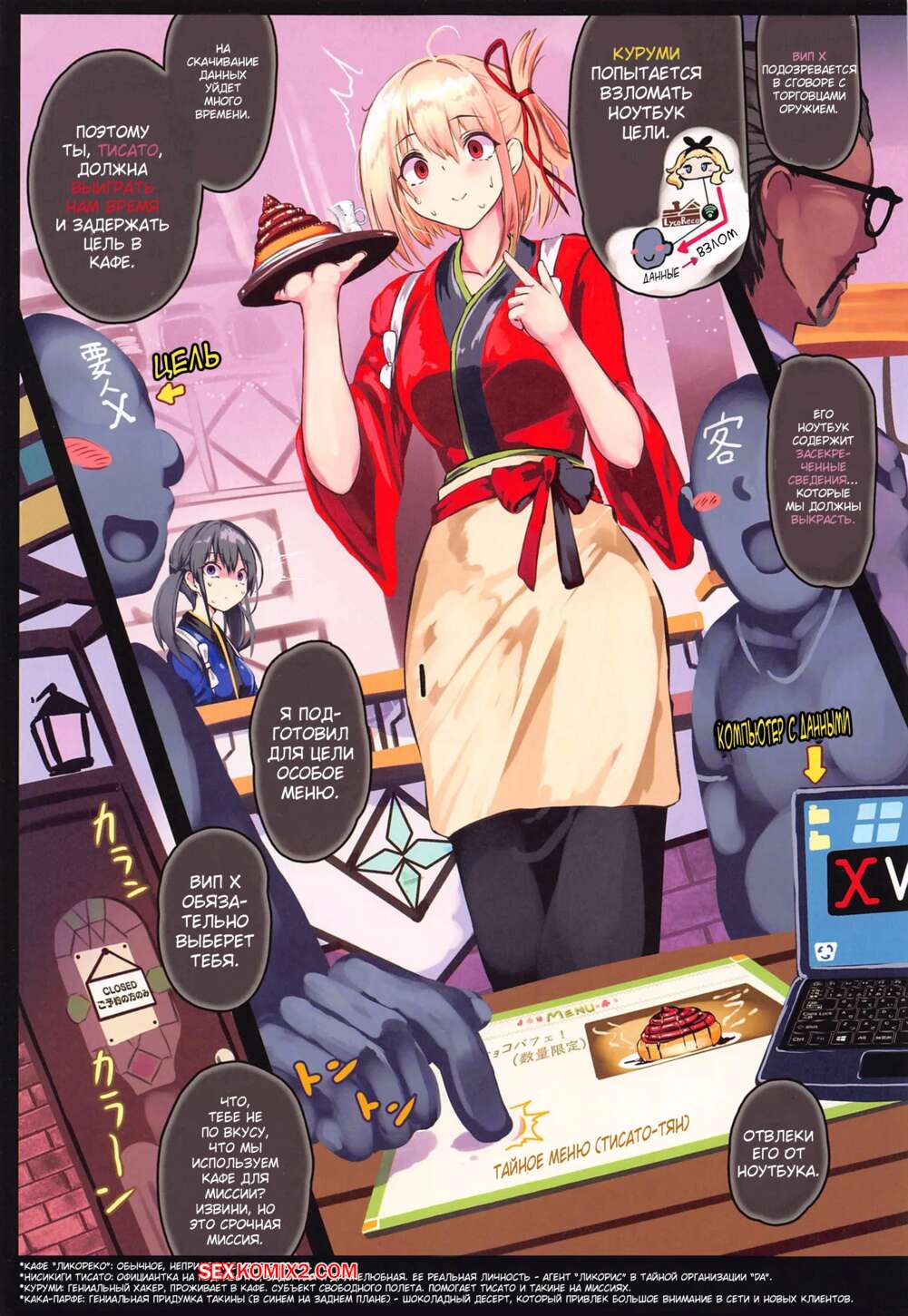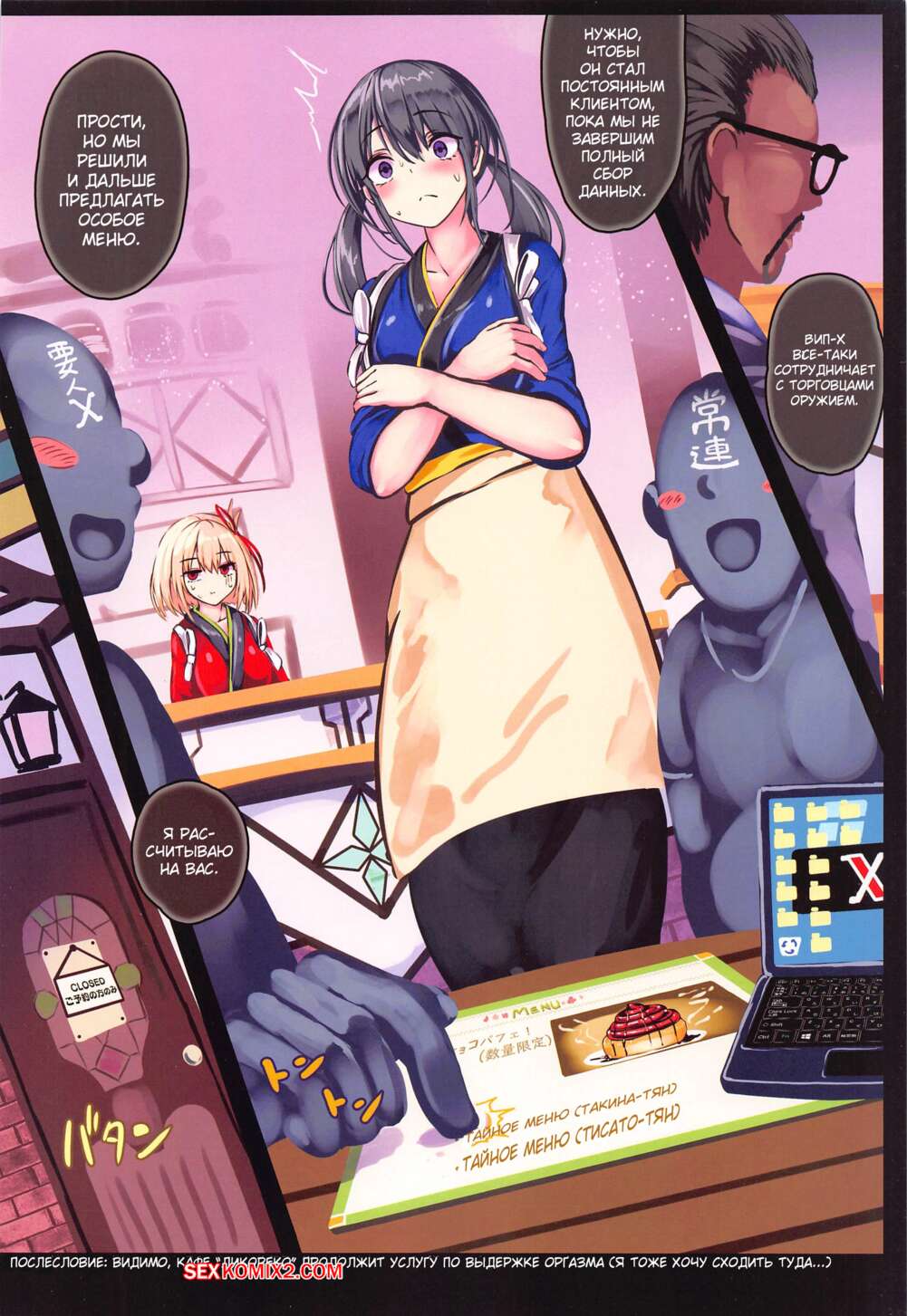 Порно комикс Протокол Допроса Девушки из Кафе. Monikano Горячие красотки работают в кафе, где к ним регулярно пристают клиенты. Они лапают девушек, после чего раздевают сучек, чтобы поиграться с их дырочками разными секс игрушками.