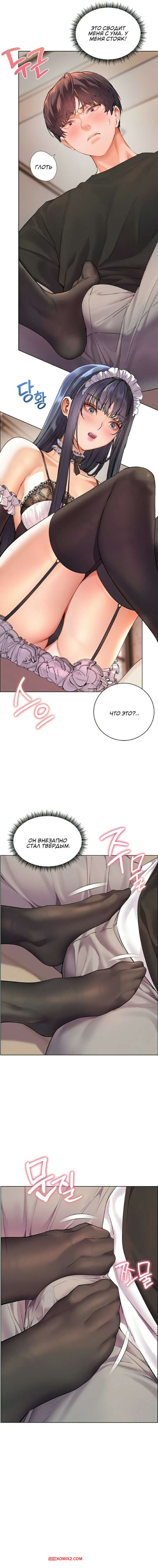 Порно комикс Усилия учителя. Часть 65 и 66 и 67 и 68 Горячая брюнетка надела костюм горничной и быстро вызвала стояк в штанах у своего дружка. Красотка достала член, после чего стала дрочить его ножками, делая парню приятно.