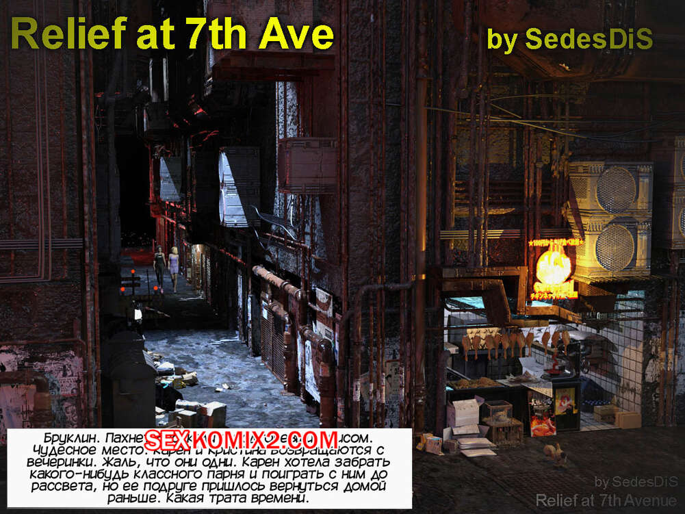 Порно комикс Облегчение на 7 авеню. Relief at 7th Ave. SedesDiS Горячая брюнетка обнаружила в переулке голого бездомного и возбудилась, увидев его член. Девушка не смогла устоять перед соблазном и разделась, чтобы отведать его член в своей пизде.