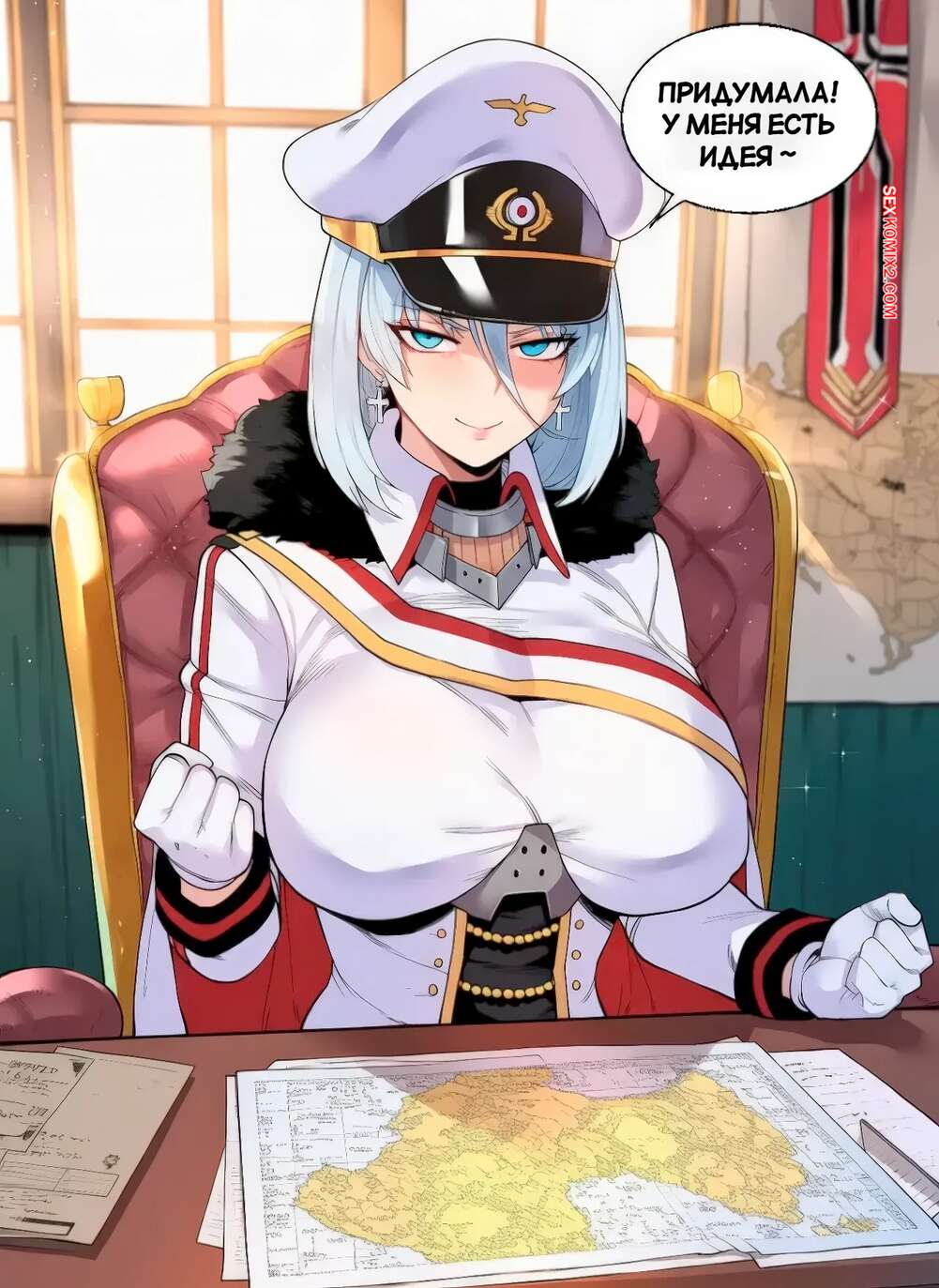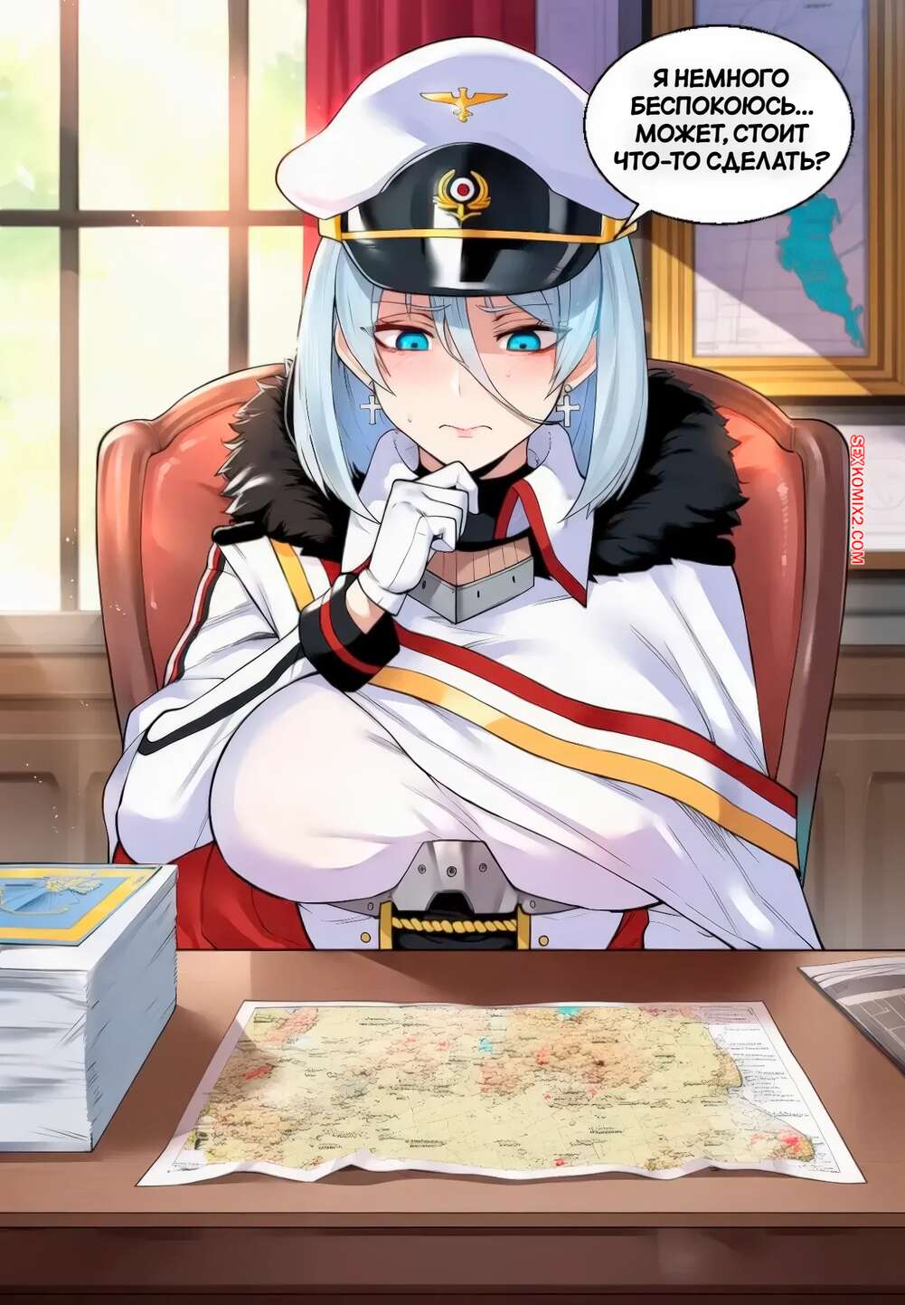 Порно комикс Анти стрессовая работа. Anti Stress Work. FrogAI, Livefrog. Горячая блондинка надела сексуальный наряд, желая порадовать своего командира. Она встала на колени и отсосала его большой хуй, после чего дала выебать свою пизду и заполнить ее спермой.