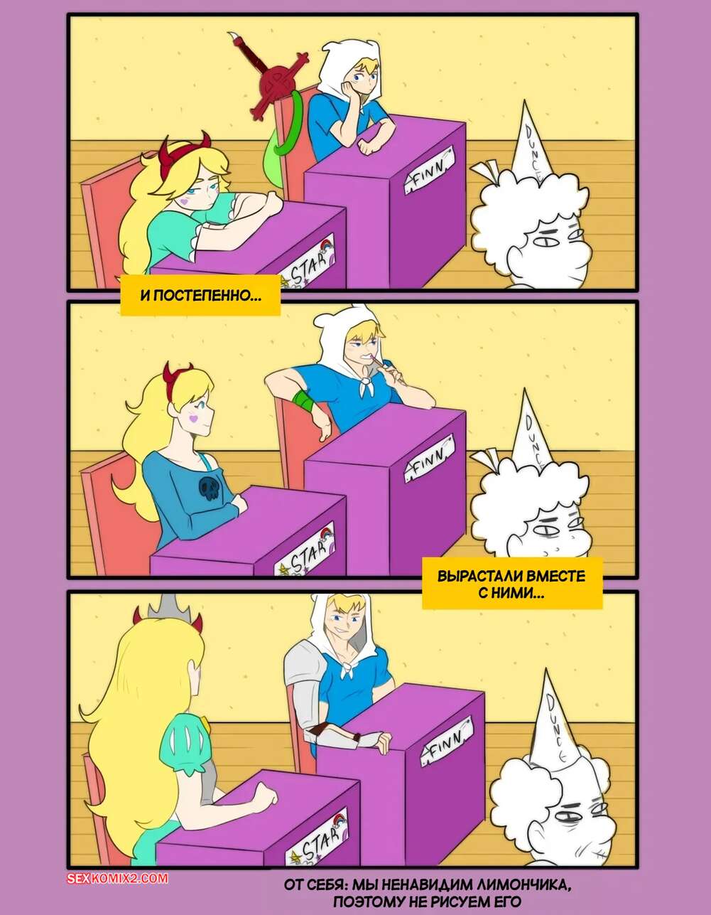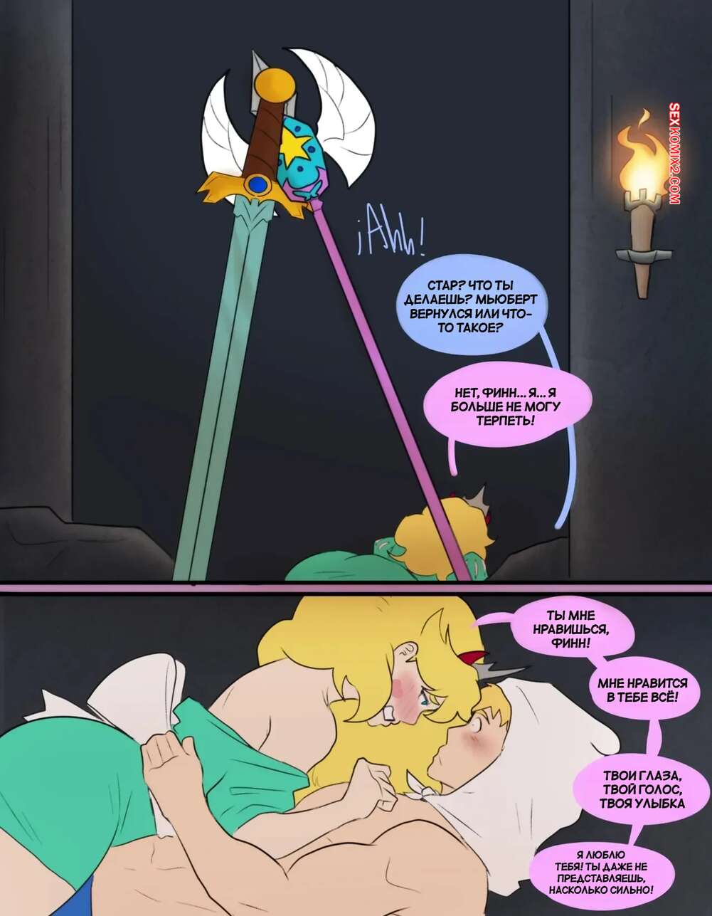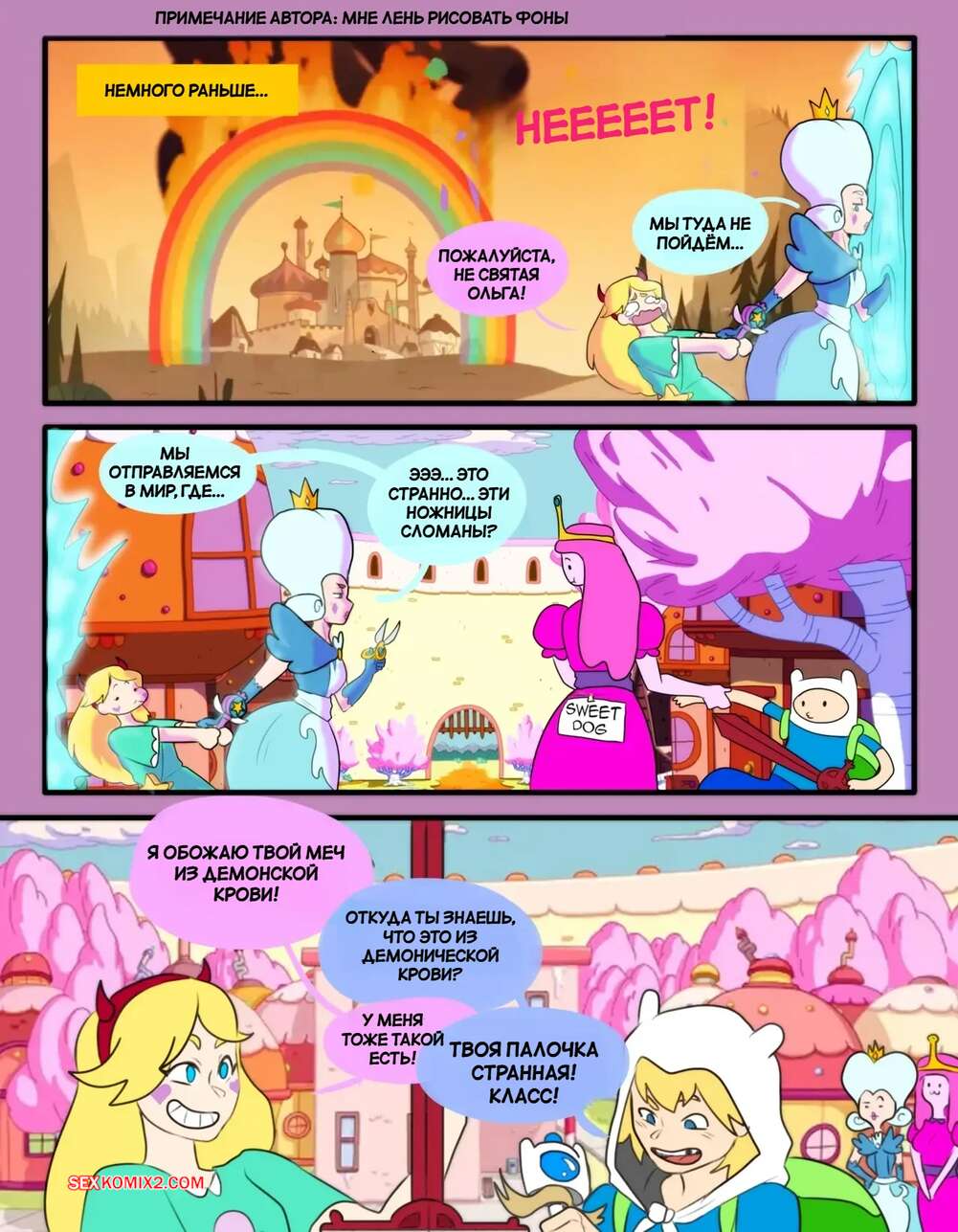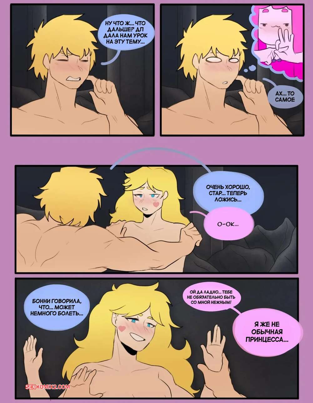 Порно комикс Adventure Time, Стар против. Волшебное время. Magic TIME. Tinkybox. Красотка Стар стала заигрывать со своим дружком, желая повеселиться. Они стали страстно целоваться и раздеваться, после чего девушка раздвинула ножки и приняла в себя хуй парня.