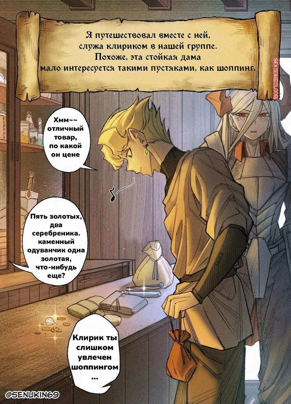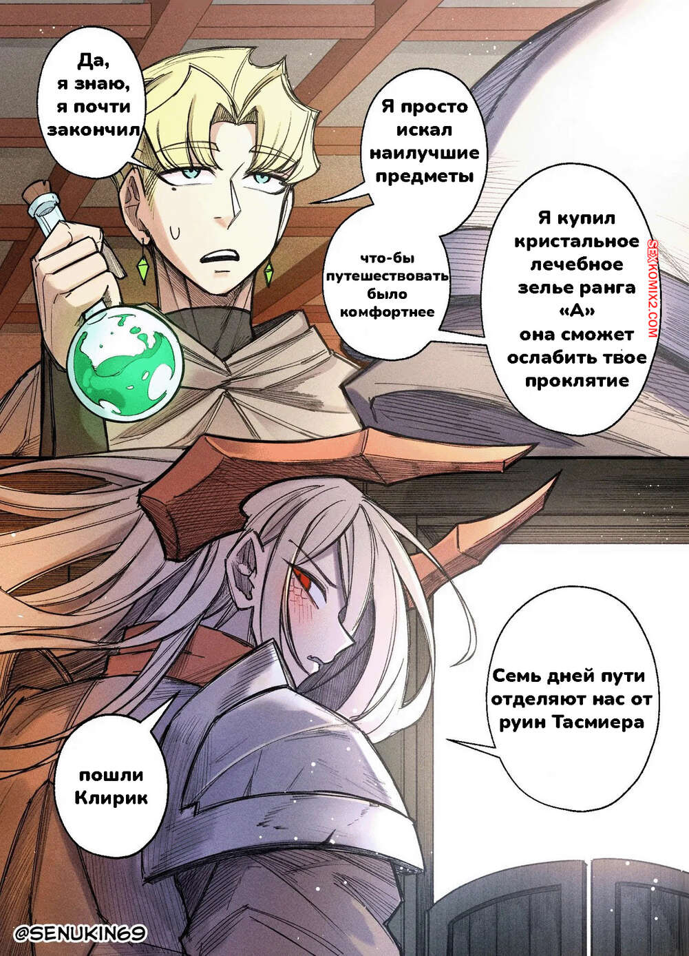 Порно комикс Клирик и Рогатая Воительница. Сеансы исцеления Домсии. Часть 5. Hornee Borgar Сексуальная блондинка с рожками возбудила парня своим невероятным телом и у него быстро встал хуй. Красотка оседлала его член и дала как следует оттрахать свою пизду, помогая парню кончить.