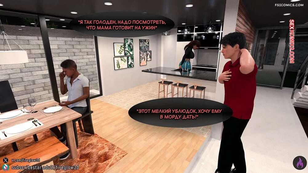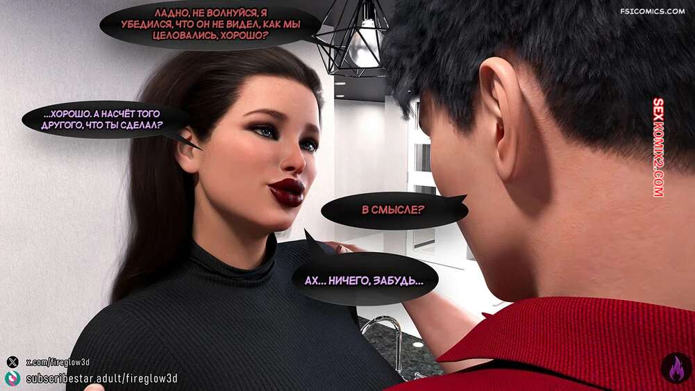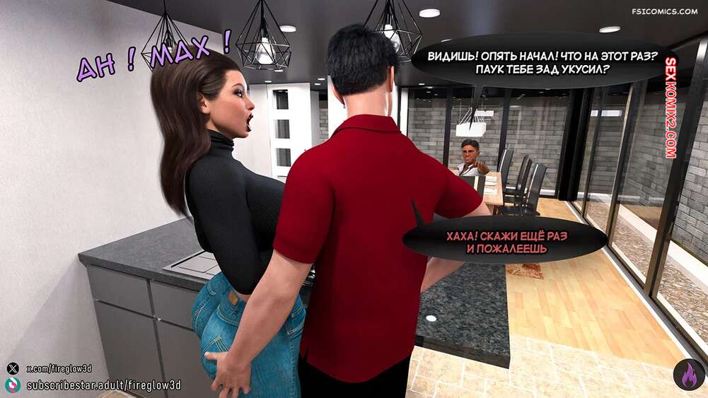 Порно комикс Табу обнимашки. Часть 2. Taboo Snuggles. Fireglow3D Горячая красотка занималась делами на кухне и Макс стал наблюдать за ее аппетитной попкой. Он отшлепал мамочку, застав ее врасплох, а затем прижал к себе и крепко поцеловал.