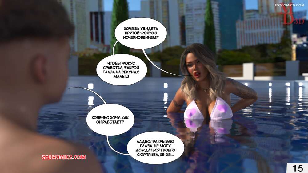 Порно комикс Скрытые желания. Часть 1. Hidden Desires. MagicDragon3D. Молодой парень мажор вызвал к себе горячую красотку из эксорта, чтобы с ней пошалить. Они отправились в бассейн, где парень стал лизать пизду красотки, желая скорее трахнуть ее.