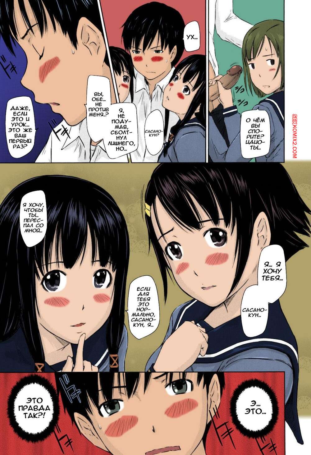 Порно комикс Влюбленные. Часть 1. Sweethearts. Kisaragi Gunma Горячие брюнетки с аппетитными телами заигрывают со своими дружками, желая заняться сексом. Девушки возбуждают парней своими прелестями, после чего дают себя выебать.