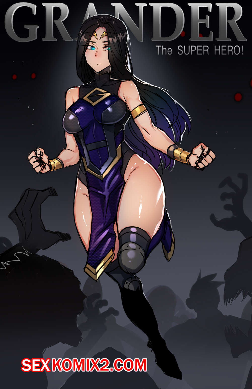 Порно комикс Grander. Части 1 и 2 и 3 Красотка героиня спасала людей, но затем на нее напали и она очнулась схваченная. Ее стали раздевать, чтобы заставить его сосать большой хуй парня, после чего он ее хорошенько выебал.