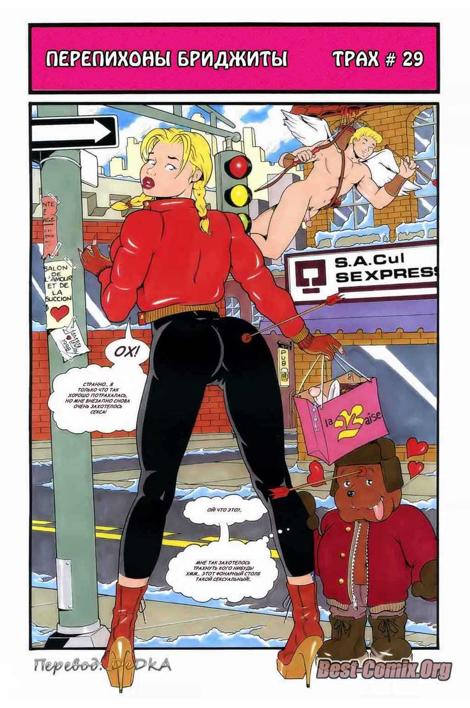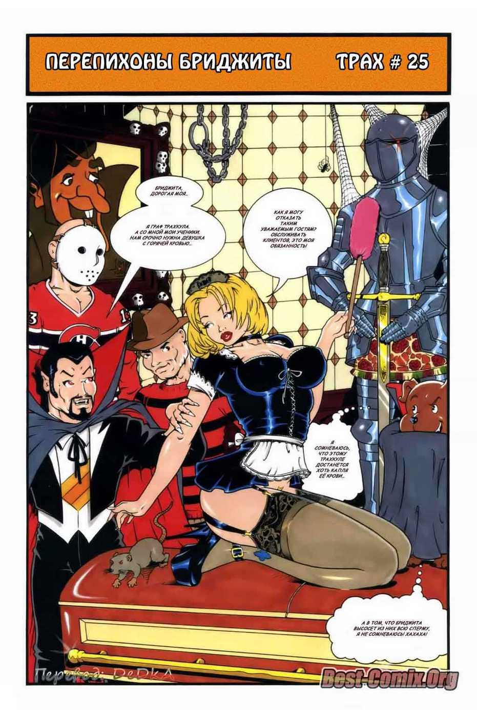 Порно комиксы время приключений «Перепихоны Бриджиты. Части с 21 по 30». В этих частях вы увидите новые истории о сексуальной блондинке с большими титьками. Она отправилась в джунгли амазонки, встретила там племя аборигенов и отдалась их самому сильному войну. По возвращению из джунглей она отправилась к своему богатенькому знакомому, чтобы поиграть в ним в гольф, парень трахнул блондинку прямо на поле. Той же ночью, когда она легла спать в её комнату проник инопланетянин и выебал красотку в её кровати своим двойным членом. Сексуальная жизнь кипит, вы можете в этом сами убедится, посмотрев этот порно комикс.