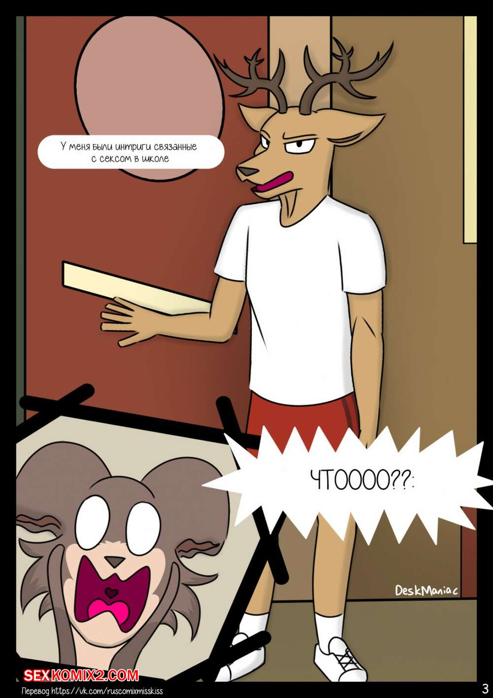 Порно комикс Фурри. Полуночное желание. Чать 2 Парнишка спалил девушку, дрочащую прямо посреди спортивного зала в школе. Она была так сильно возбуждена, что не смогла устоять и позвала его к себе, чтобы потрахаться с ним.