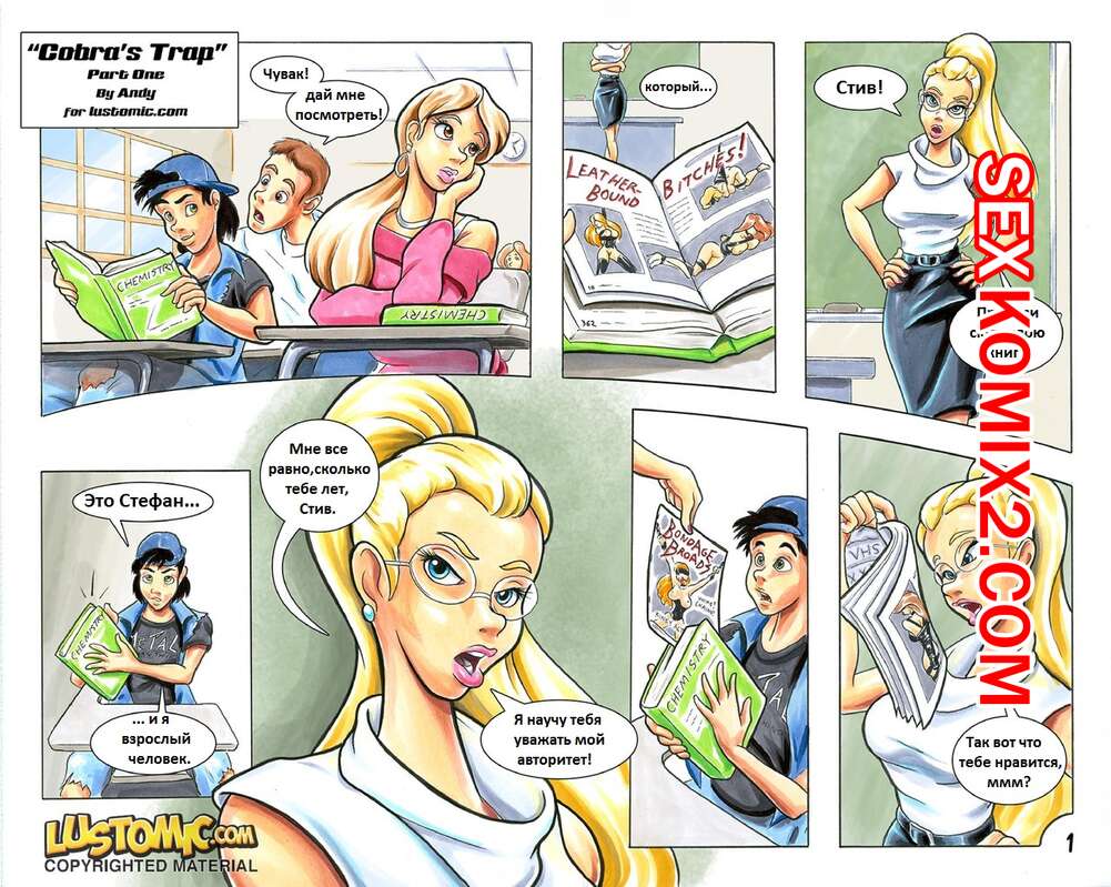 Порно комикс Кобра трап. Часть 1. Cobras Trap Горячая блондинка училка любит звать к себе домой своих учеников парней. Там она наряжает их в женскую одежду, а затем связывает их член и сосет, чтобы кайфануть от этого.
