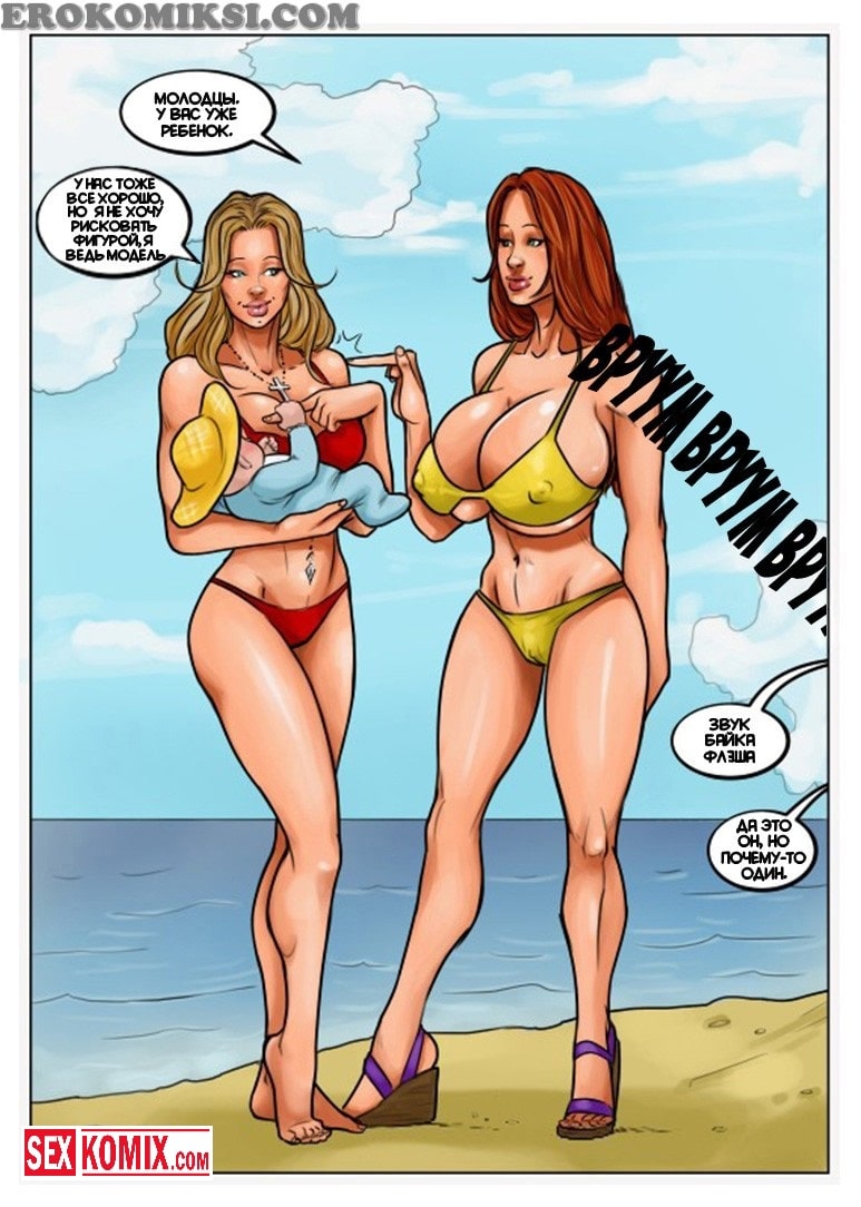 Порно комиксы картинки. Флэш. Супружеская пара, молодой парень со своей очень сексуальной женой. Поехали на пляж, чтобы отдохнуть со своими друзьями, но из-за того, что женщина кормит грудью ее соски очень сильно набухли, и из них постоянно вытекает молоко. Их друзья при встрече обратили на это внимание, особенно муж подруги. Ему очень понравилось как её купальник намокает от молока, и чернокожий мускулистый парень решил соблазнить жену своего друга. Пока тот спал они уединились в чаще леса и занялись сексом.