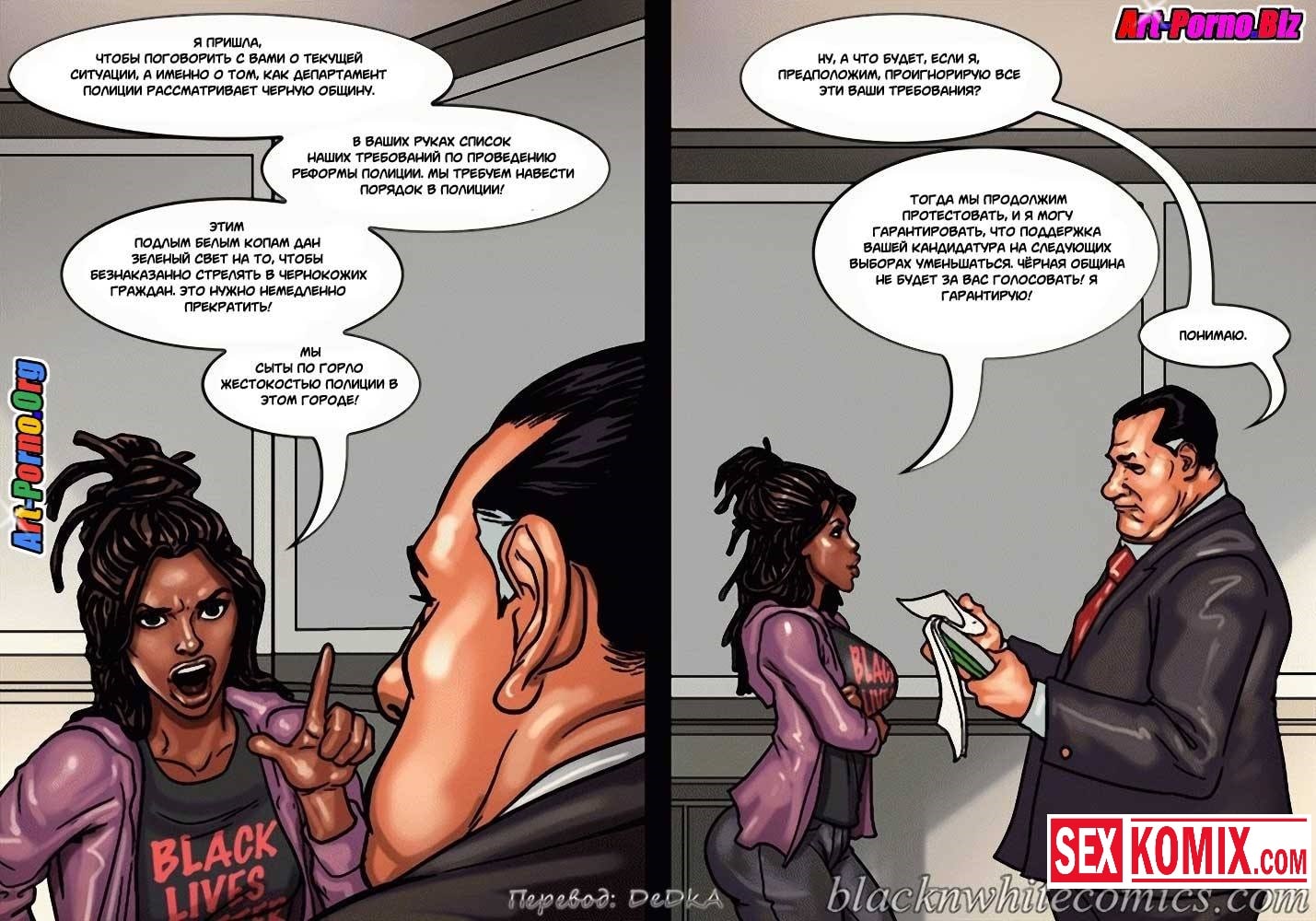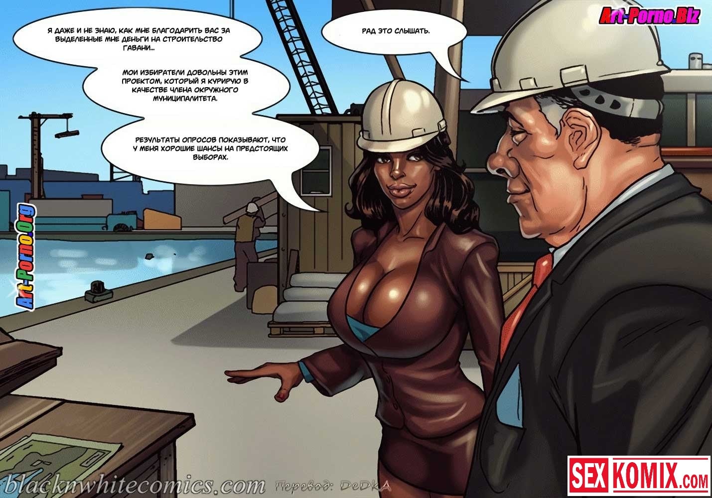 Порно комикс Мэр. Часть 2. На плечах мэра города лежит очень большая ответственность, ему нужно следить за благосостоянием жителей и улучшением условий жизни. Мужчина отправляется на строительный объект, где узнаёт что стройка заморожена. Главная на этом объекте сексуальная красотка, чтобы убедить ее в том, что проект должен продолжать жить. Ему приходится очень сильно попотеть, а именно хорошенько трахнуть эту красотку. Девушка с удовольствием принимает в себя здоровенный член мэра города.
