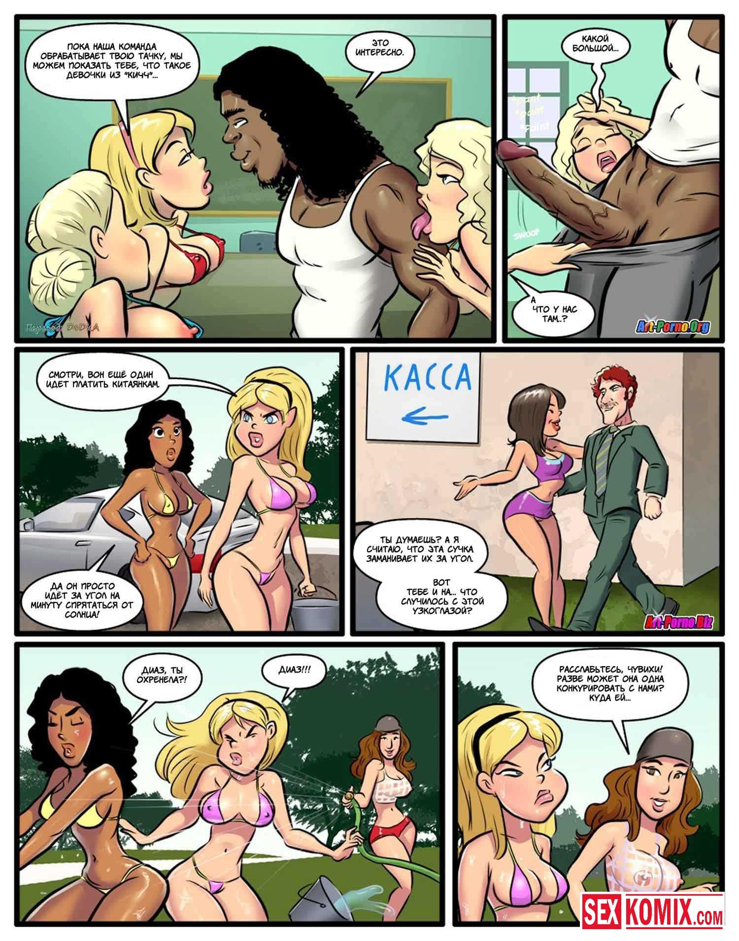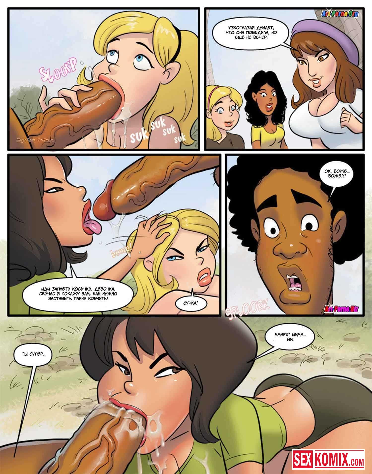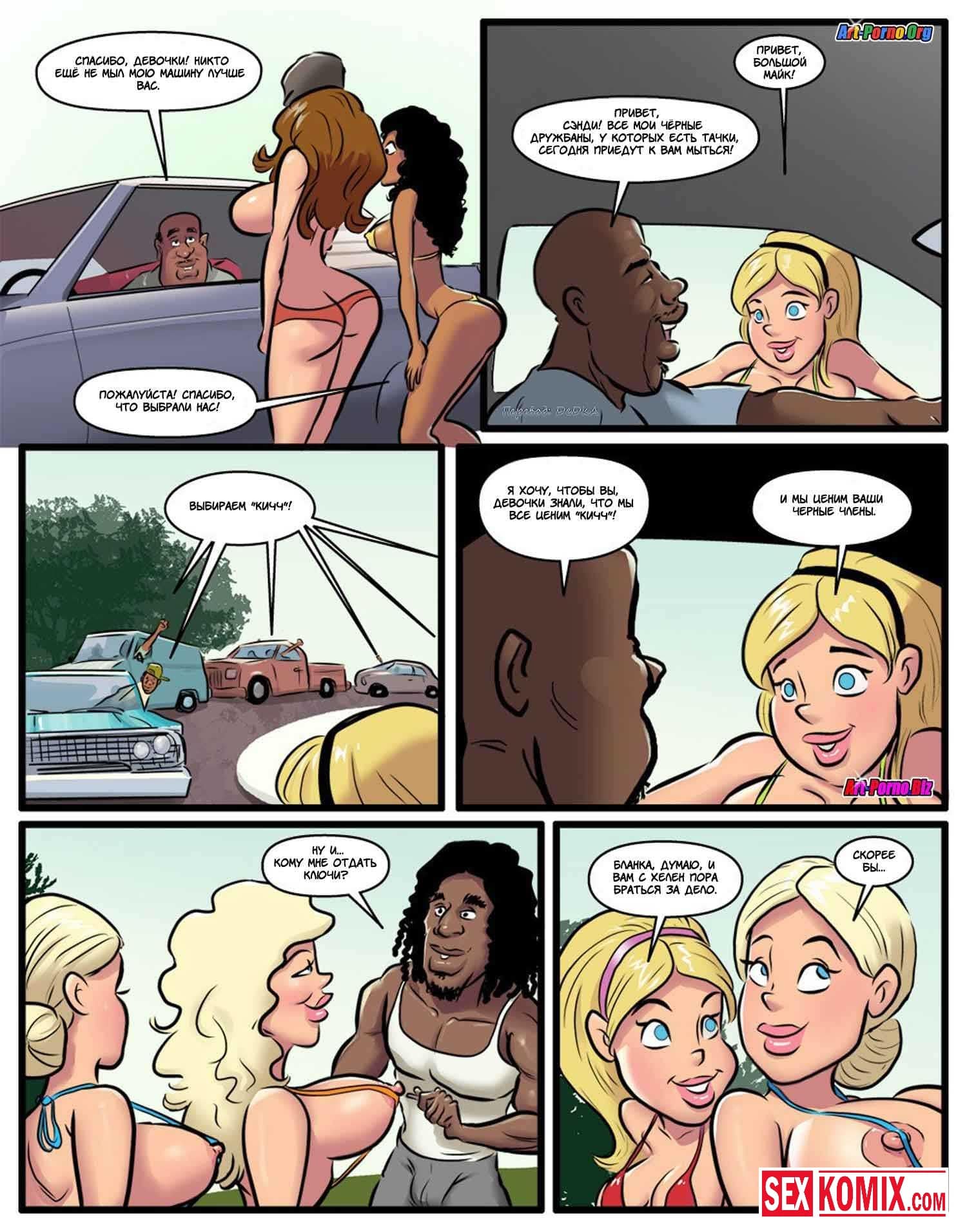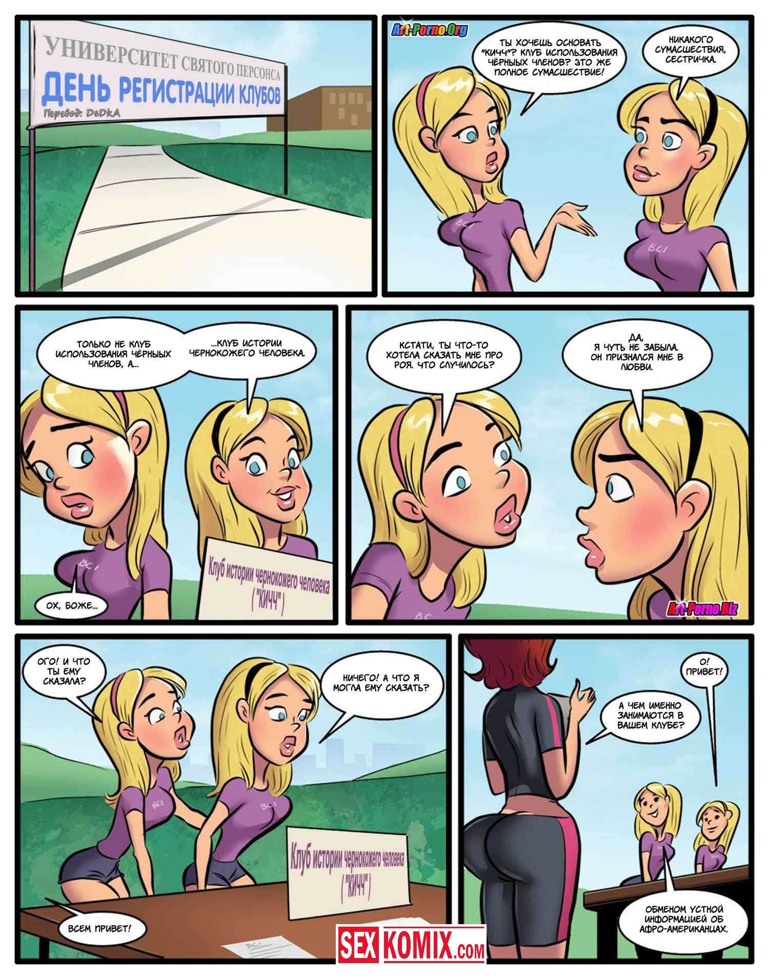 Порно комикс Курсы использования чёрных членов. Часть 2. Девушки почувствовали вкус больших членов чернокожих парней и уже не хотели заниматься сексом со своими белыми парнями. Что бы не потерять своих девушек, парни разрешали им трахаться с чернокожими, но только в их присутствии. И позже чернокожие парни начали брать за это деньги, под видом курсов использования черных членов. Богатым мажорам пришлось за это платить. Иначе их девушки будут трахать им мозги.
