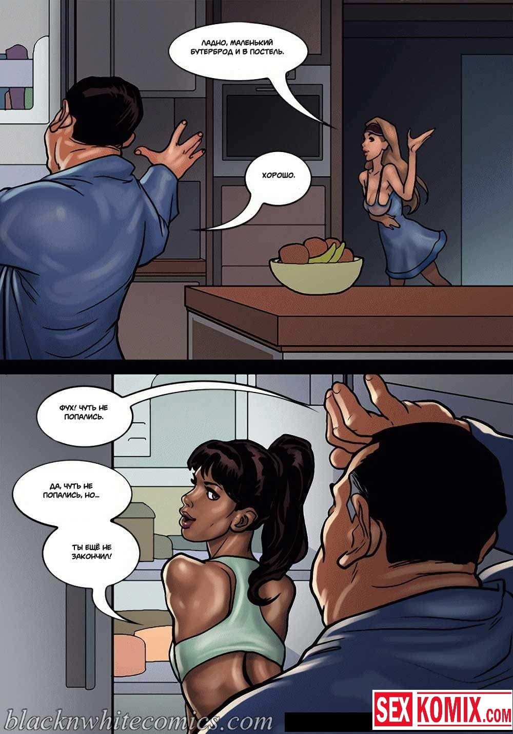 Порно комикс Мэр. Часть 3. Развратный мужчина очень любит заниматься сексом с девушками, и поскольку он является мэром города, в его власти почти все девушки этого города. Несмотря на то, что он женат и очень сильно любит свою жену, ему все равно хватает сил соблазнять и заниматься сексом с разными красотками. И даже когда ему приехала в гости знакомая чернокожая девушка. Ночью, когда она пошла попить воды, он её подкараулил возле холодильника и прямо на кухне трахнул, пока его жена спала.
