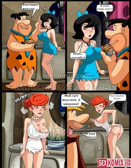 Порно комиксы Флинстоуны. Часть 1. Обмен женами за ужином. Две семейные пары весело проводят время. Но вдруг возникает идея поменяться женами. Ведь каждый из этих мужчин давно хотел поиметь жену своего друга. Девушки сами не против, они охотно идут на такое предложение. После обмена начинается страстный жесткий секс. Им очень весело и они не хотят чтобы это заканчивалось. Мужчины трахают этих красоток прямо на полу в доме у одного из этих мужчин. Позже девушки начинают вылизывать друг у друга. Они очень возбуждены, и удивлены что не делали этого раньше. Ведь это так прекрасно.