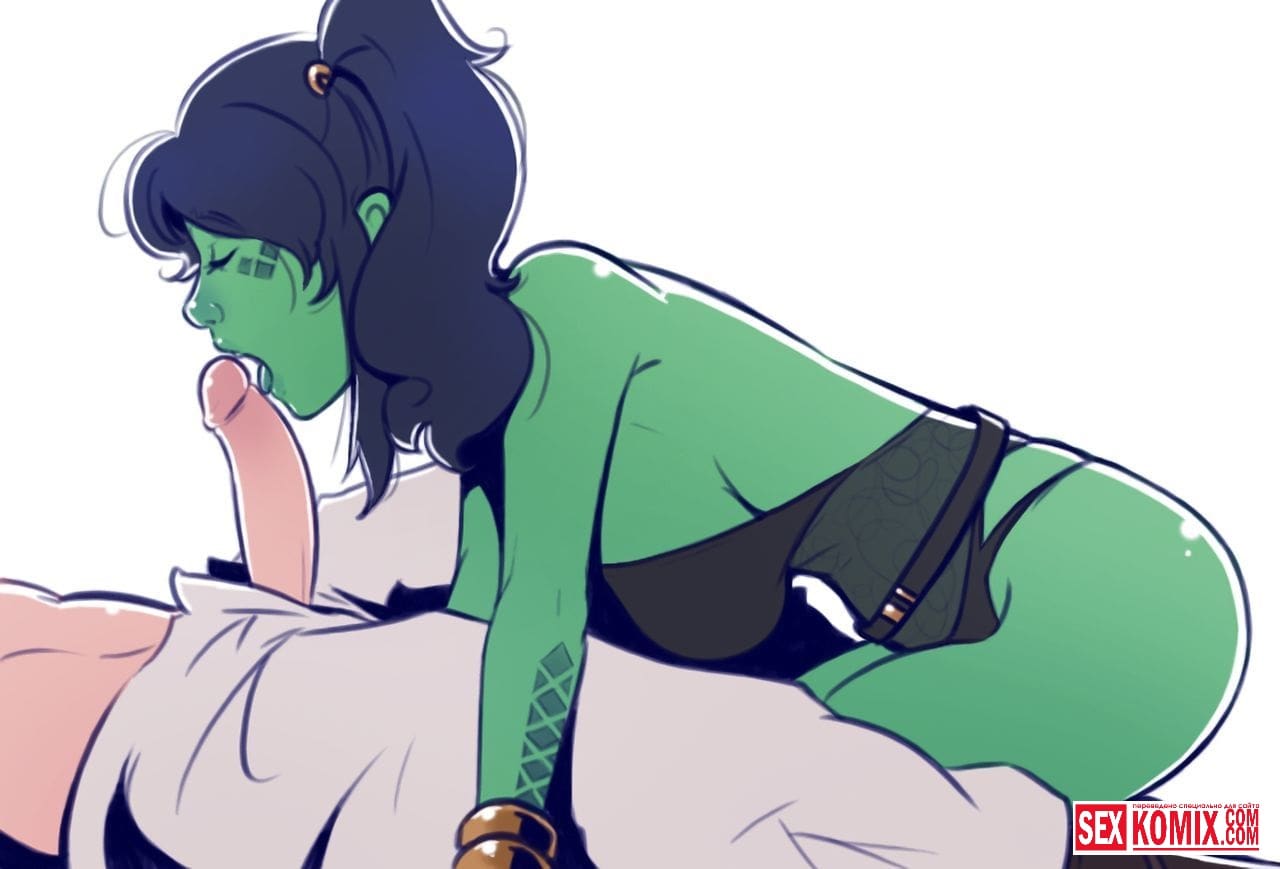 Порно комикс Яра Ларсо. Пышногрудая зеленокожая красотка мастурбирует у себя в комнате. Она настолько замечталась, что не заметила проходящего мимо мужчину. Он долго наблюдал за ней, натрагивая свой член. Но мужчина больше не мог ждать, и он зашёл в комнату к девушке. Увидев его стоячий член - она не удержалась и начала отсасывать у него, ведь она уже вся текла. После страстного глубокого минета мужчина поставил девушку раком и хорошенько оттрахал. После эта сочная красотка занимается групповым сексом ещё с двумя девушками.