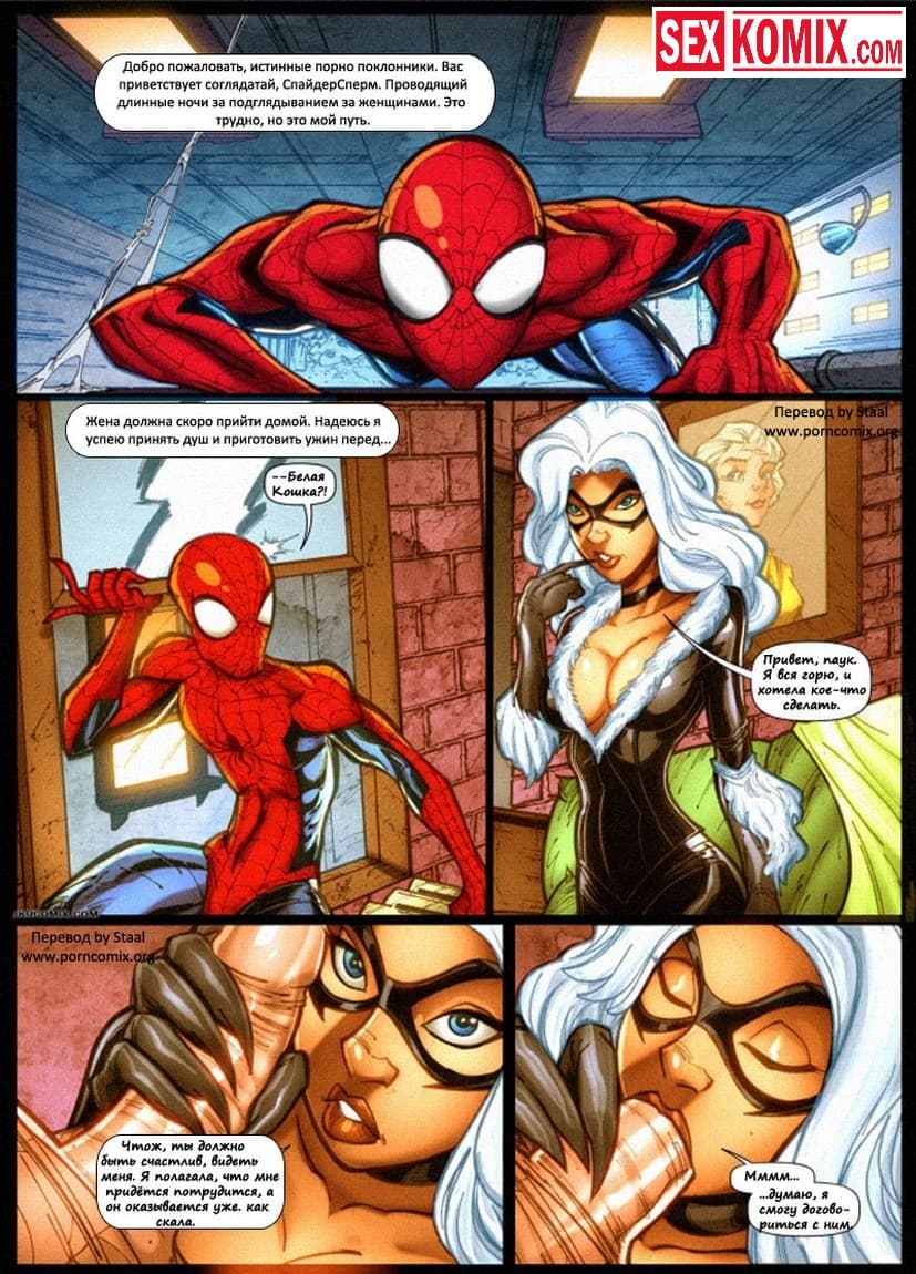 Порно комикс Паучья сперма. Человек паук еще тот проныра. Он подстерегает девушку в переулке и начинает её трахать. Она не против ведь это сам человек паук. Отдаваясь по полной программе, она решает сделать ему приятное. И принимается сосать его член. Но вдруг откуда не возьмись появляется ещё одна красотка с шикарной фигурой и сиськами как у Памелы Андерсон. Паучек не теряется и лижет писечку ново пришедшей девушки а потом трахает обоих. Групповой секс на улице со стонами и оргазмом в конце.