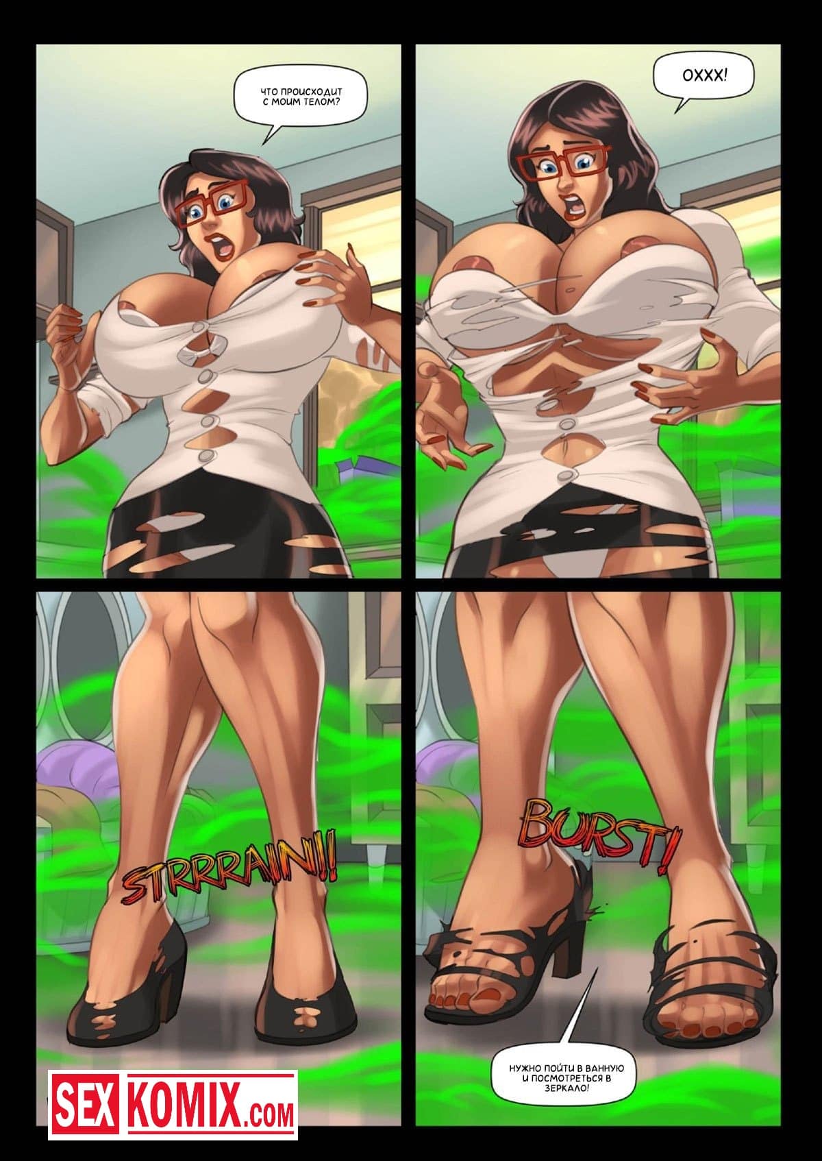 Порно комикс Необычная вечеринка. Часть 2. Эта история продолжение той необычной вечеринки, где девушки превращались в великанш с большими сиськами. Девушки трахали парней и отсасывали у них, поднимая их над собой. Один паренек оказался очень смекалистый, и пока одна из девушек отдыхала возле стенки, он подкрался к ней и начал вылизывать ее огромную киску, пока девушка не кончила. Параллельно в это же время произошла похожая история с девушками из колледжа. Прогуливаясь медленным шагом после занятий они тоже начали превращаться великанш.
