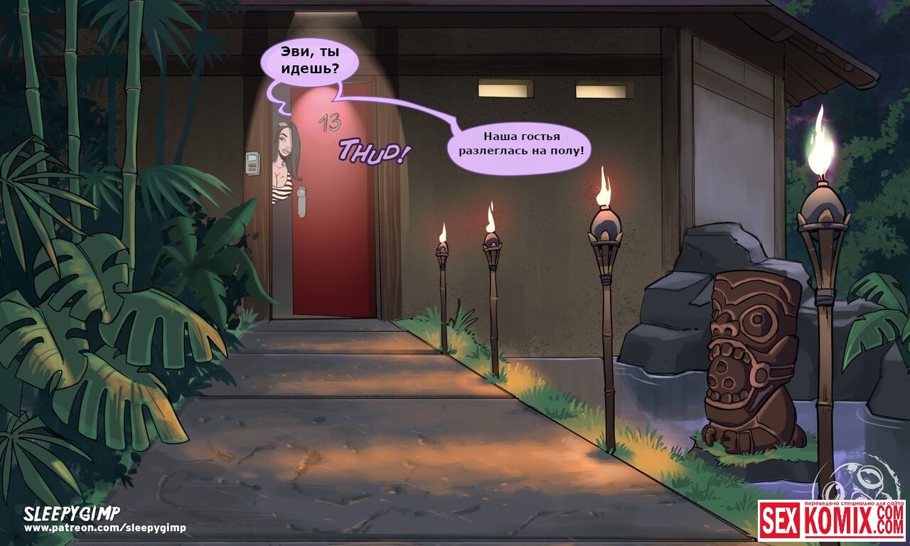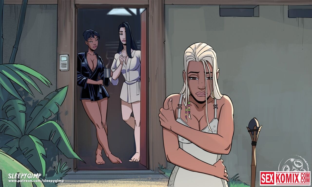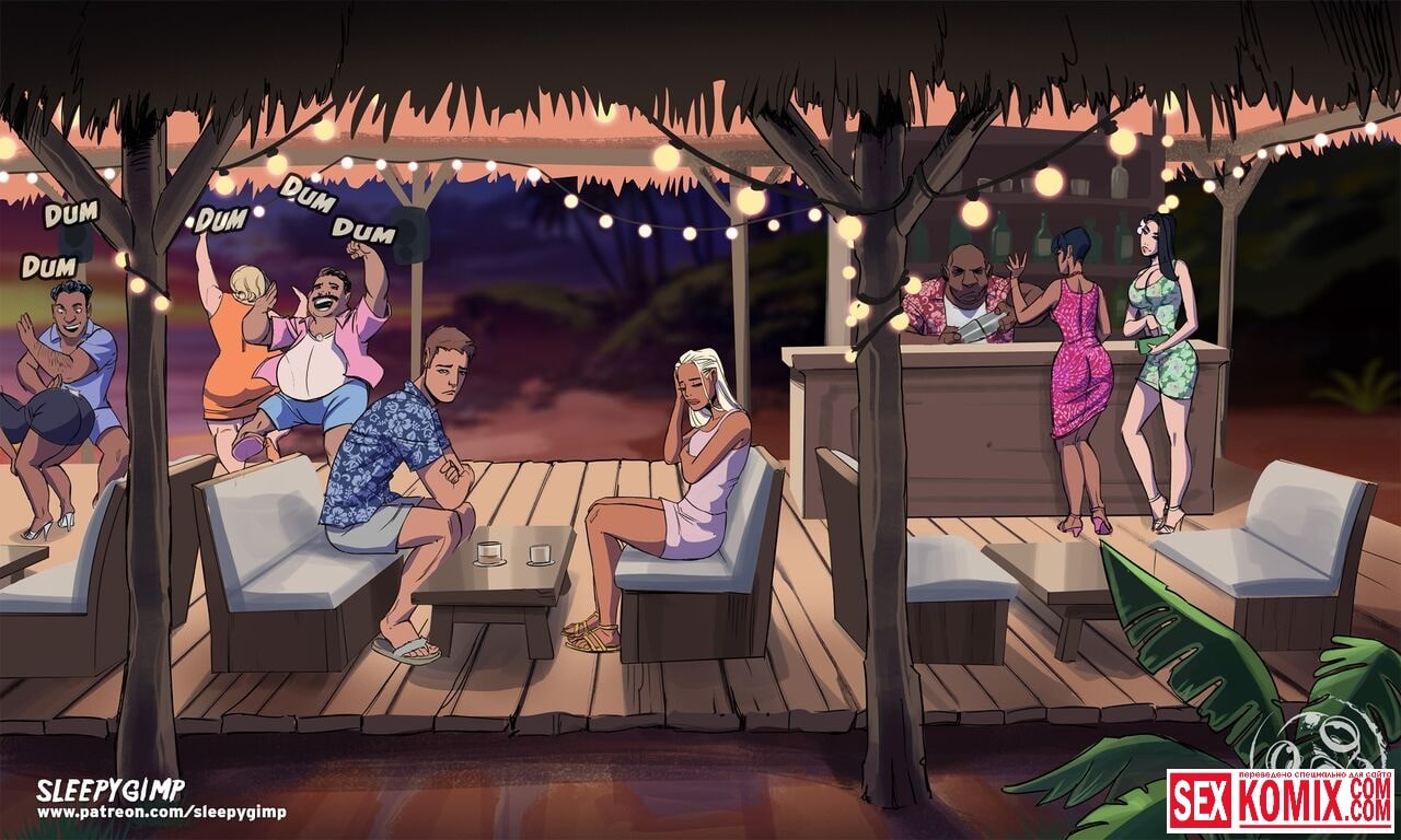 Порно комикс Коктейль Руфи Колада. Две горячие лесбиянки отдыхали на берегу океана и услышали как пара ссорится за баром. Девушка психанула и послала своего парня куда подальше, а сама пошла гулять по берегу. Эти две красотки решили утешить её, и отправились вслед за ней. Они пригласили её на несколько бокалов коктейля. После которого она стала пьяненькая, и пошла с ними в отель. Лесбиянки устроили развлечение в стили, как они любят, они занялись групповым сексом с элементами БДСМ. Утром когда девушка проснулась, она ничего не помнила. Но на ее душе было очень хорошо, ей захотелось помириться со своим парнем.