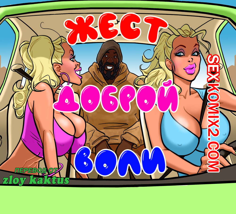 Порно комикс Жест доброй воли Две горячие сисястые блондинки решили подвезти черного бездомного парня и отвезли его к себе домой, чтобы он помыться и поесть. Одна из блондинок заметила у парня огромный хуй, поэтому залезла к нему в душ, чтобы он ее выебал.