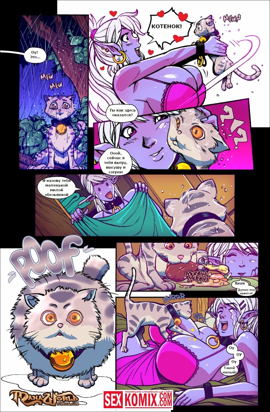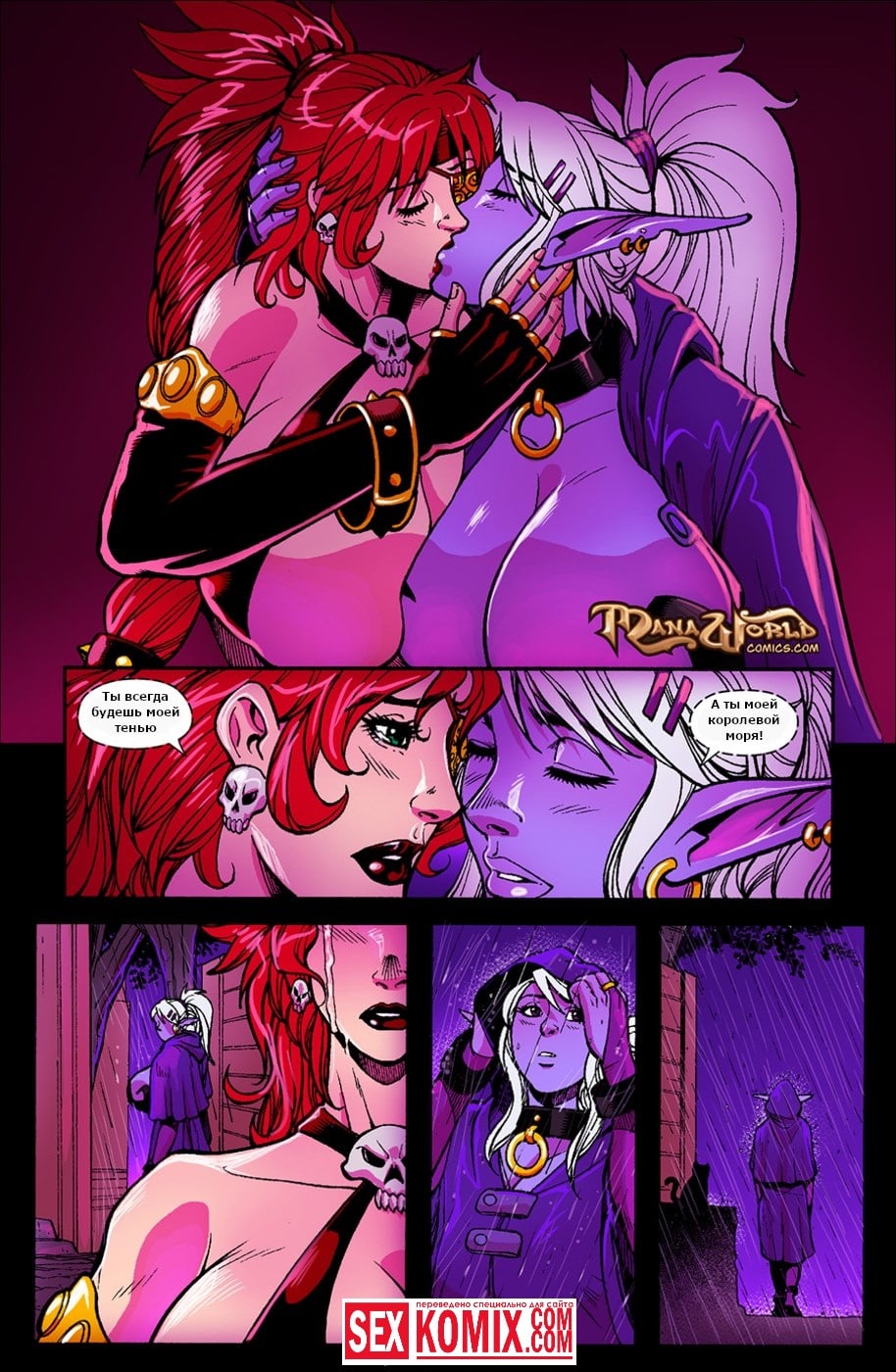 Порно комикс Похититель сердец. В эльфийском лесу наступила ночь, из далека начали доноситься стоны сексуальной эльфийки с большими сиськами, она занималась лесбийским сексом со своей подругой, женщиной воином. Девушки ласкали груди друг друга и вылизывали киски. Но все же им недоставало хорошего мужского члена, тогда одна предложила пойти в гости к знакомого парню и проговорилась о том, что у него большой член. Девушки отправились в путь в поисках сексуальных приключений. А когда пришли к тому самому парню, он был приятно удивлен, такому сюрпризу. Сегодня он займется сексом с двумя очень сексуальными красотками.