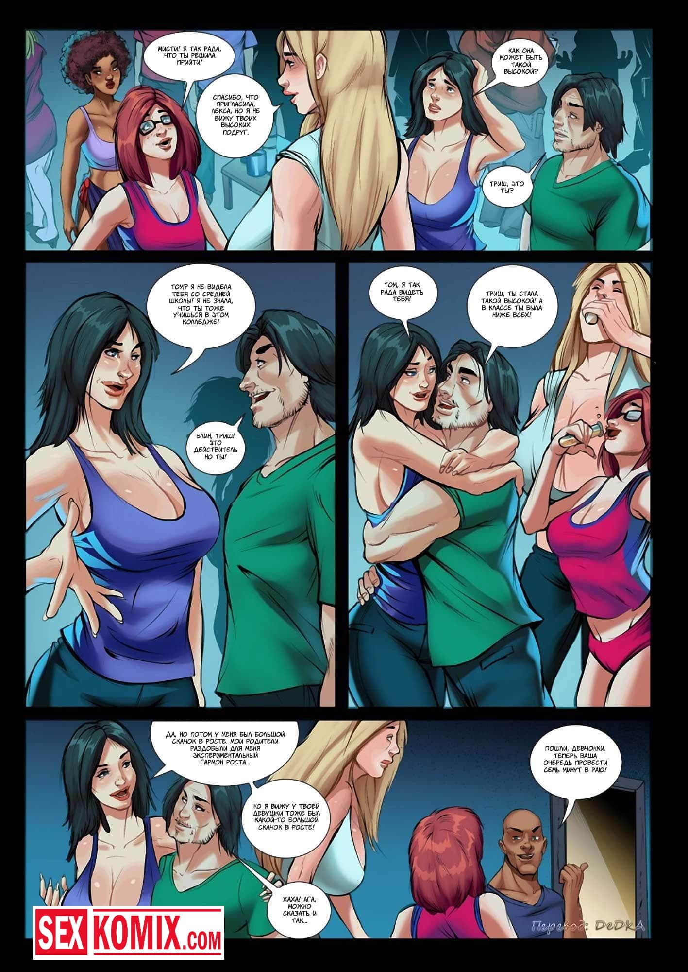 Порно комикс Только не мясо. Часть 2. Парень познакомился c симпатичной девушкой и узнал о том? что у нее аллергия на мясо/ После того как она его съедает? ее тело начинает расти? f сиськи и задница становится очень сочными и большими, но девушке такая метаморфоза не очень нравится, поэтому она старается его не кушать. Так как парню понравилось заниматься сексом с ней, когда девушка вырастает, он специально в виду подмешивает ей мясо, чтобы она росла.
